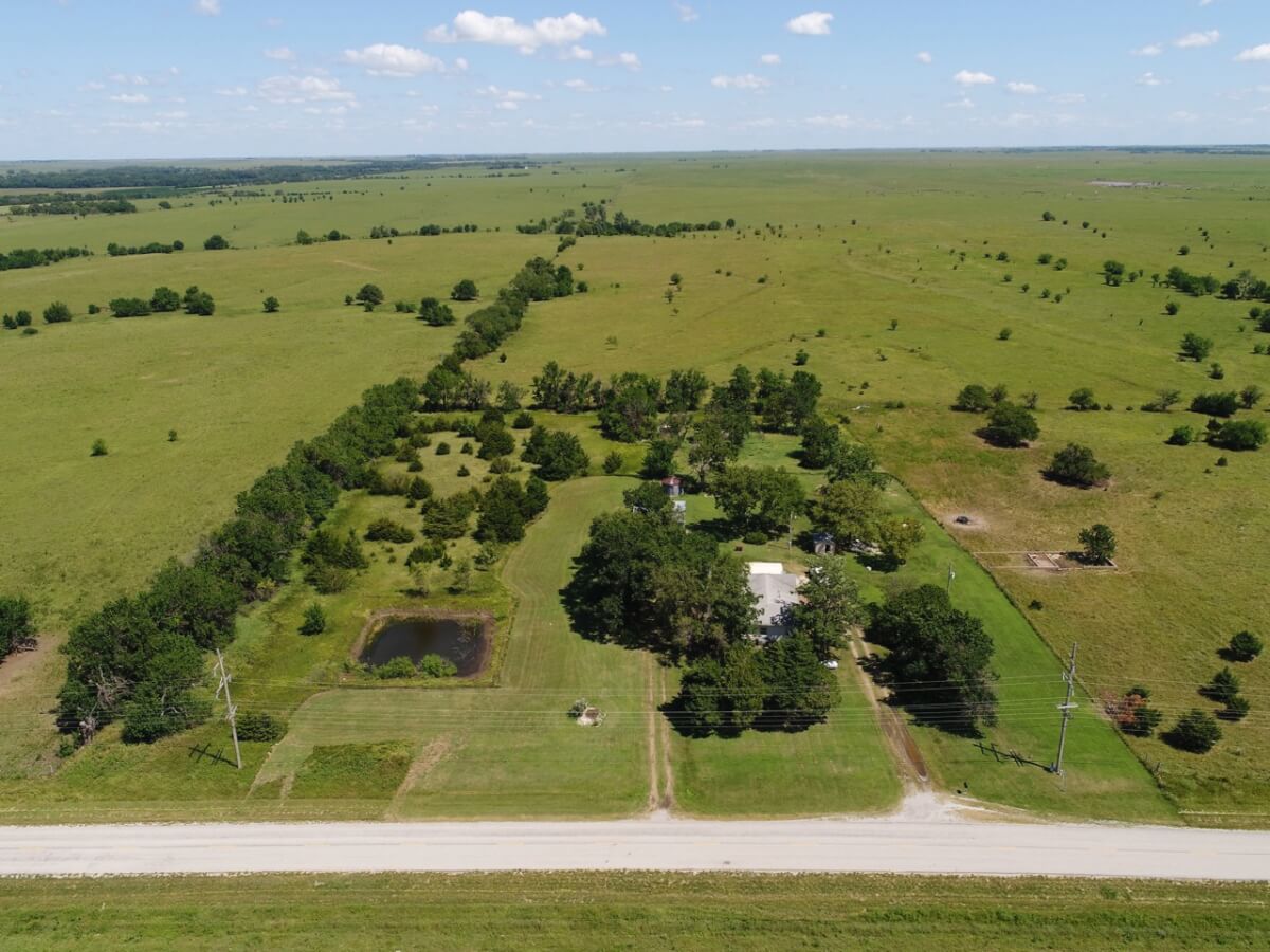PROPERTY DESCRIPTION: Great opportunity to live in the heart of the Flint Hills, just check out the aerial photo! Located on blacktop, this 3 bed 1 bath home offers 1,248 square feet of finished living space and sits on 4.2 acres. 40’x30′ insulated shop will be great for projects and storage. Homes in this area do not hit the market very often, don’t miss out on this opportunity.