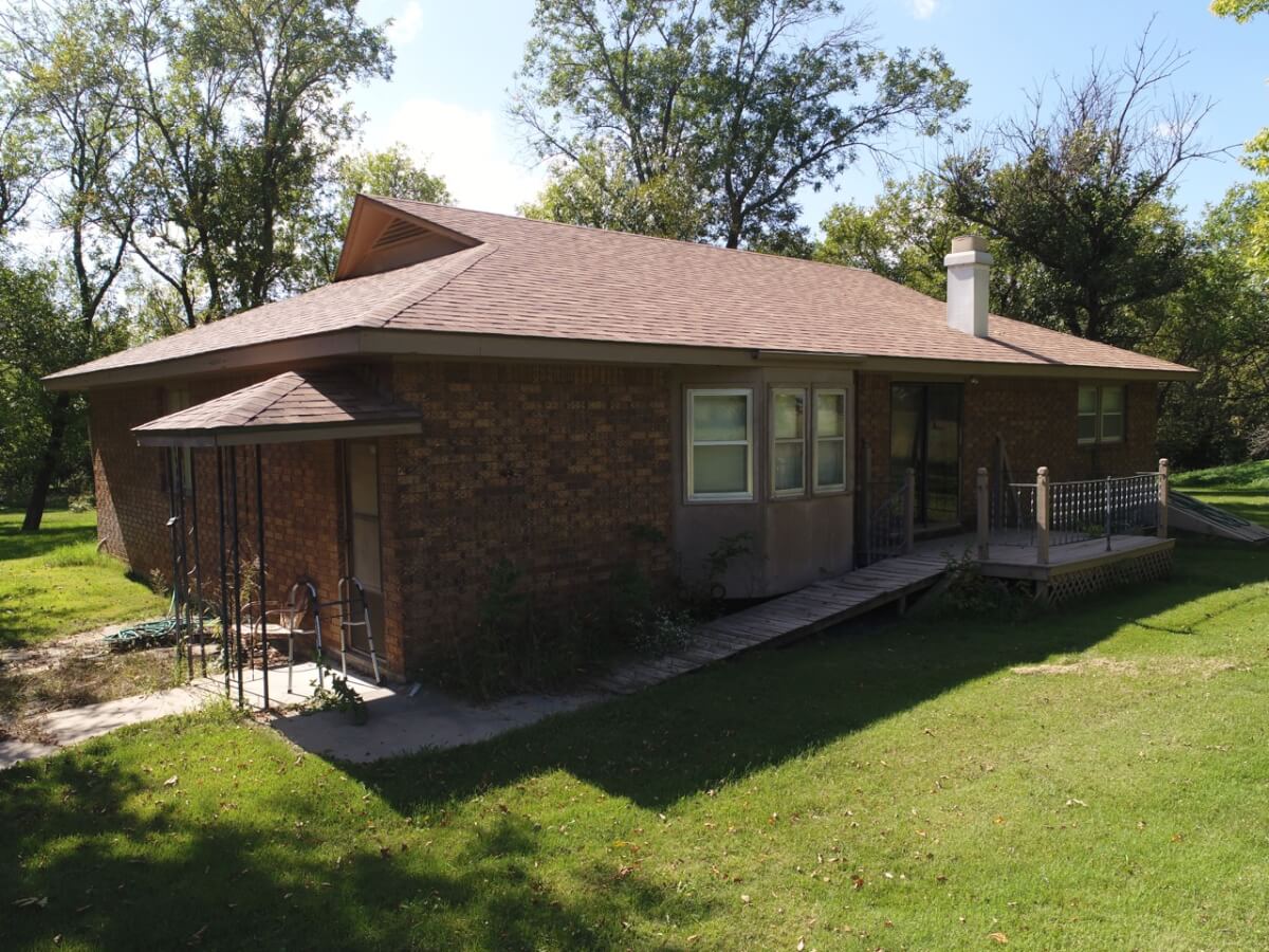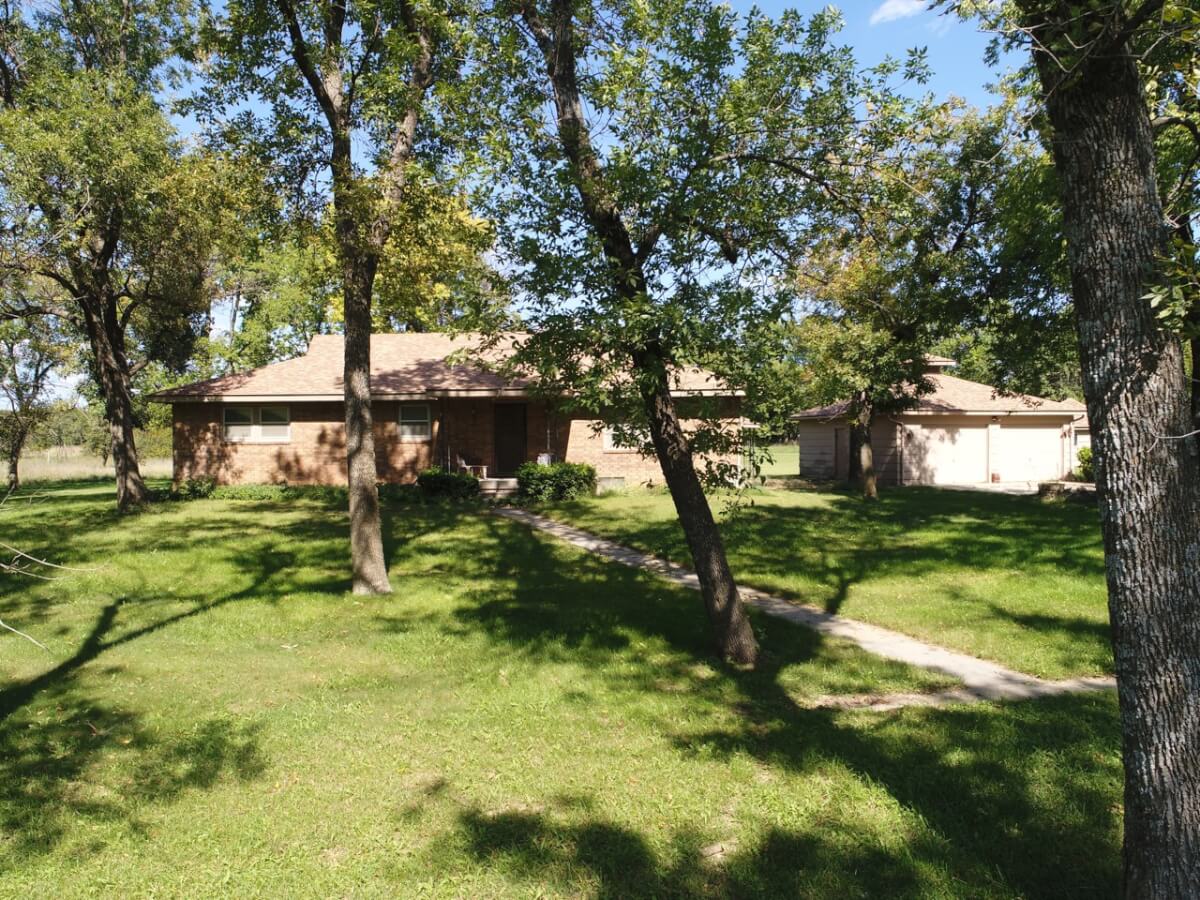 PROPERTY DESCRIPTION: 3 bedroom 2 bath brick house on 13.27 acres of timber, pasture, and creek. The house was built in 1983, has rural water, and central heat & air. There are 1852 square feet of main floor finished living area and a full unfinished basement. Other buildings include a 24′ x 24′ detached garage, a storage building, and an old machine shop. This property is a great opportunity for both owner occupants and investors. With some updates and repairs, there is a lot of room for increased equity.