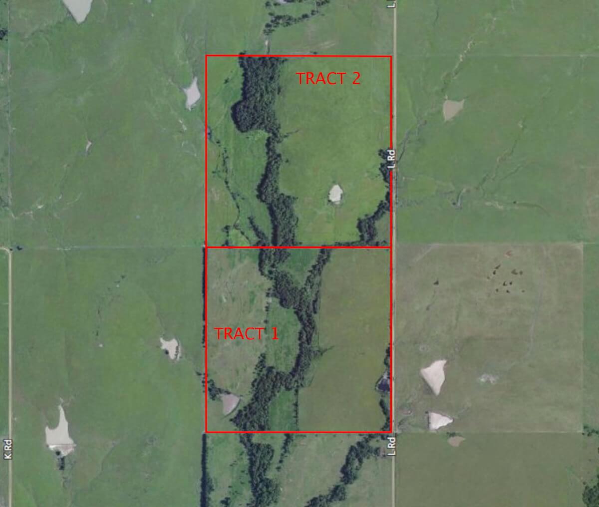 PROPERTY DESCRIPTION: 160+- acres in the scenic Flint Hills of Greenwood County, Kansas. Tract 2 is nearly identical to Tract 1, featuring 2 ponds, heavy timber lined creek, native pasture, and potential creek bottom tillable ground. There is an old Silo that sits along the boundary line between these two great properties. Both tracts have a large amount of new steel post and 5 barbed wire fence.