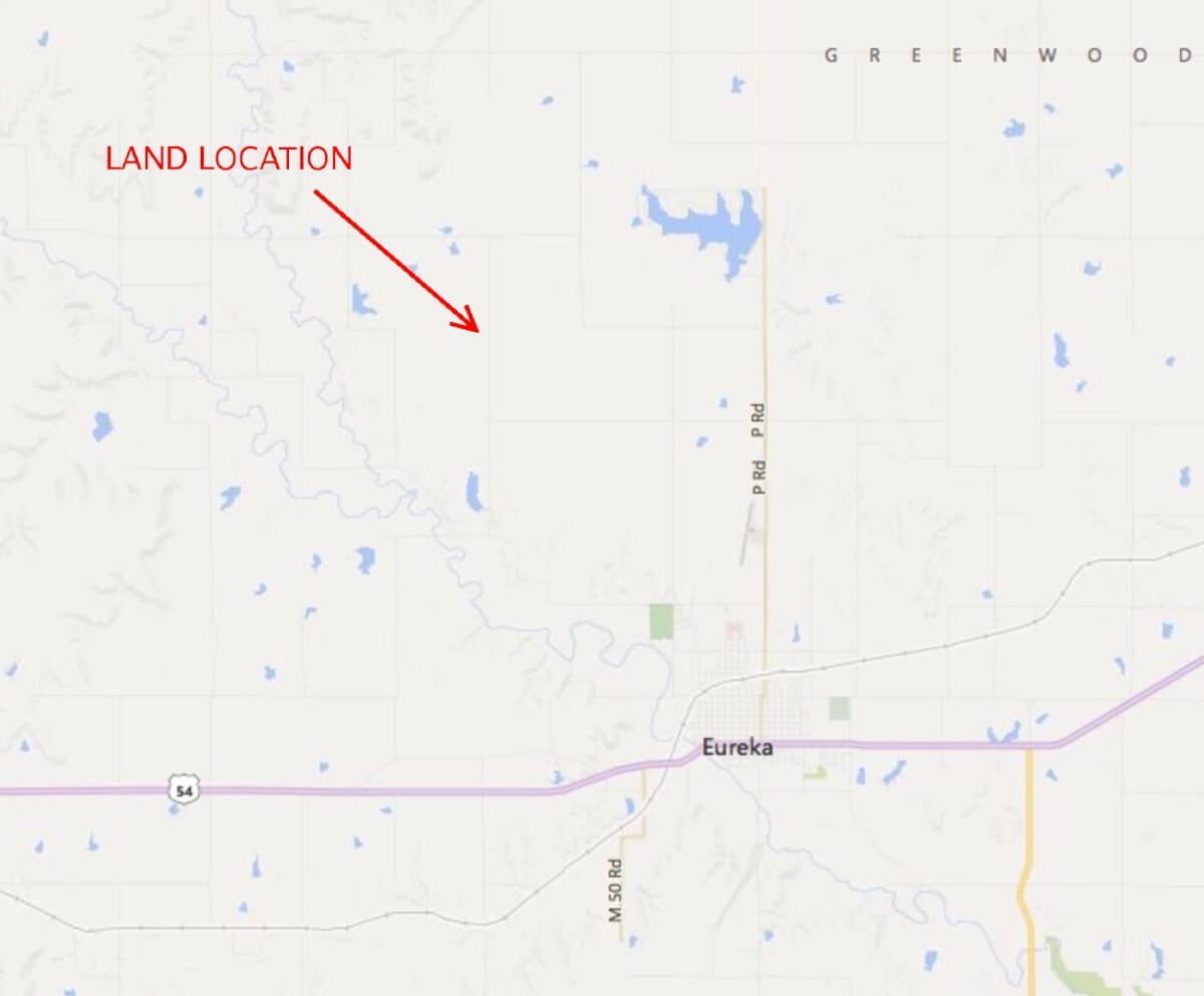 LAND LOCATION: From Eureka Country Club, northwest on River Rd. 2 1/2 miles, north on L Rd. 1 3/4 mile.