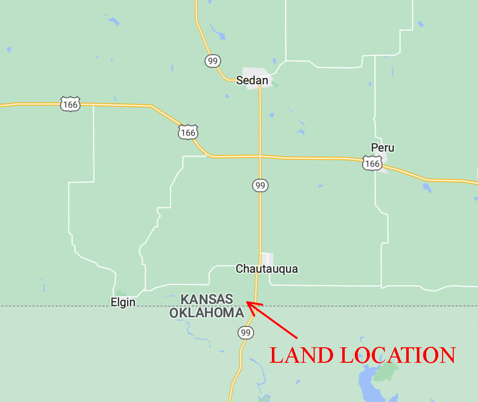 PROPERTY LOCATION: From Chautauqua, Kansas south 2 miles on HWY 99 to Arrow Rd, west 3/4 mile, then north 1/16 of a mile to the property.