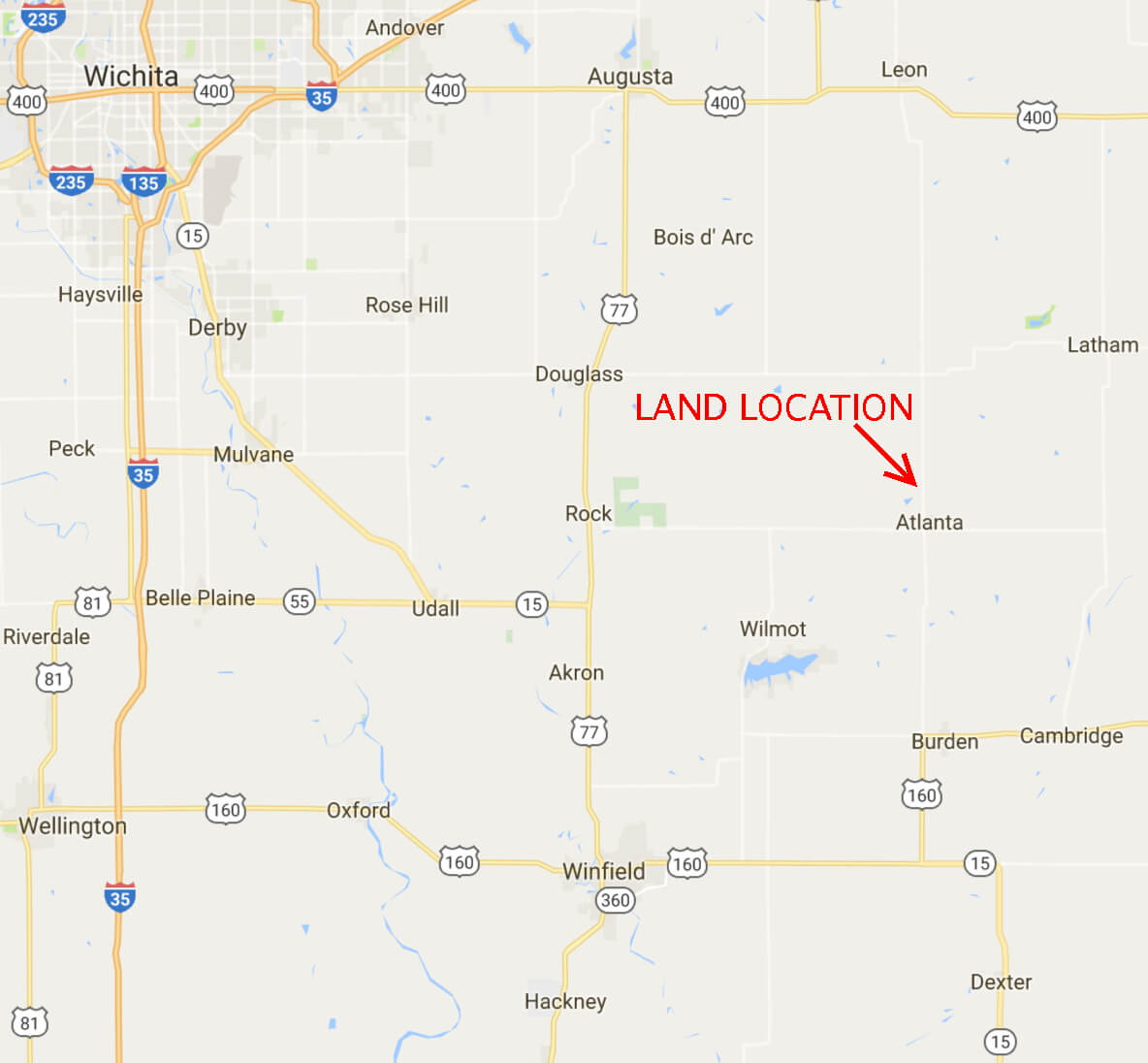 LAND LOCATION: From Atlanta, Kansas North on 211th Road 1 1/2 Miles.