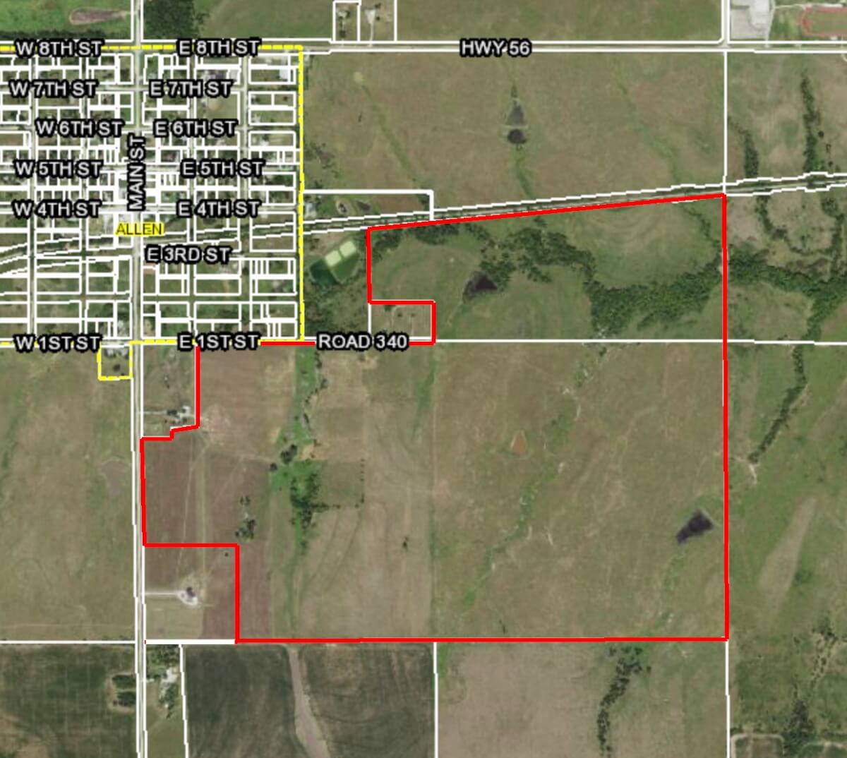 LAND LOCATION: This land is on the south edge of Allen, Kansas.