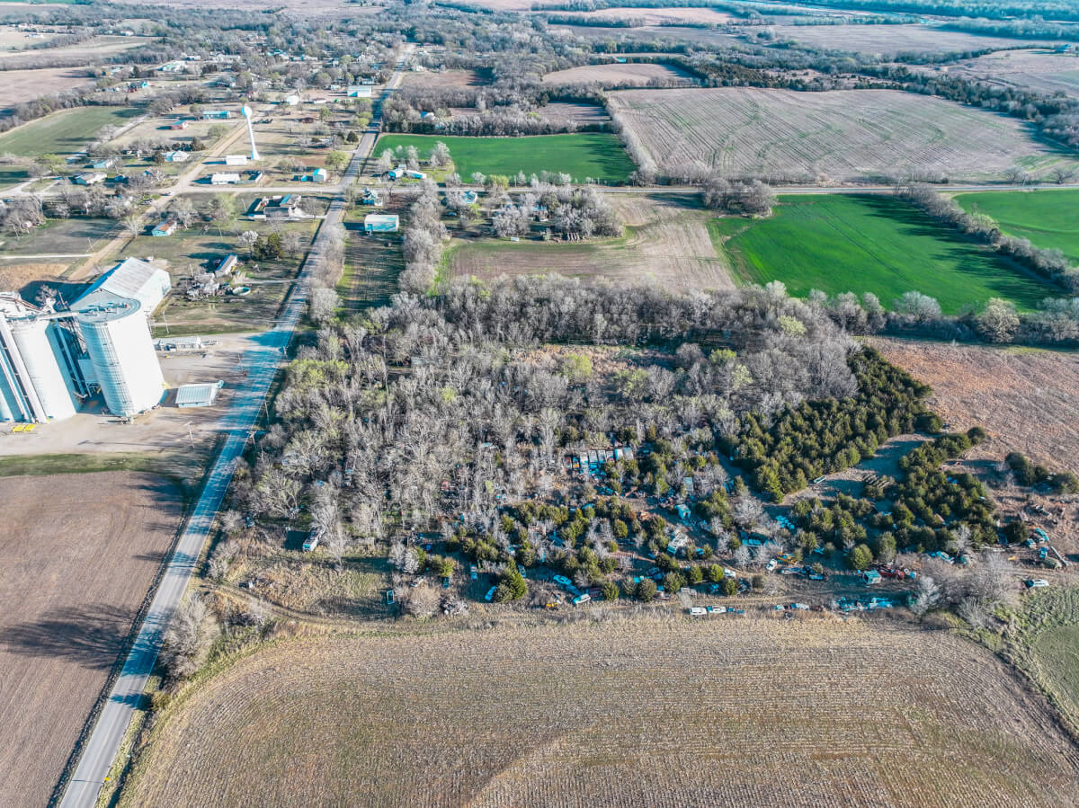 PROPERTY DESCRIPTION: Tract 6 is 4.15 acres with a 6384 square foot quonset building across the road east of the grain elevator in Geuda Springs, Kansas. Located on the Cowley/Sumner County line, this property has blacktop frontage and is heavily timbered. Great opportunity for storage, animals, or a future building site!