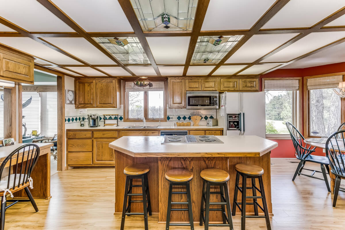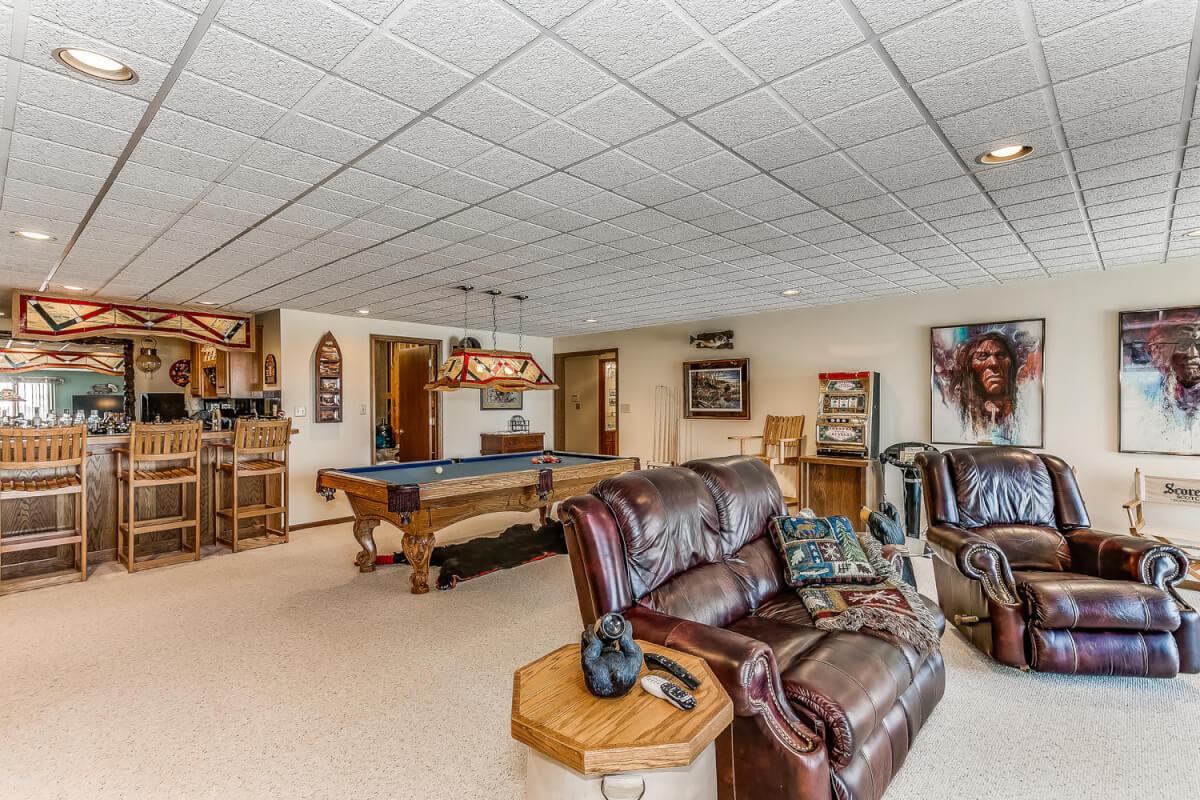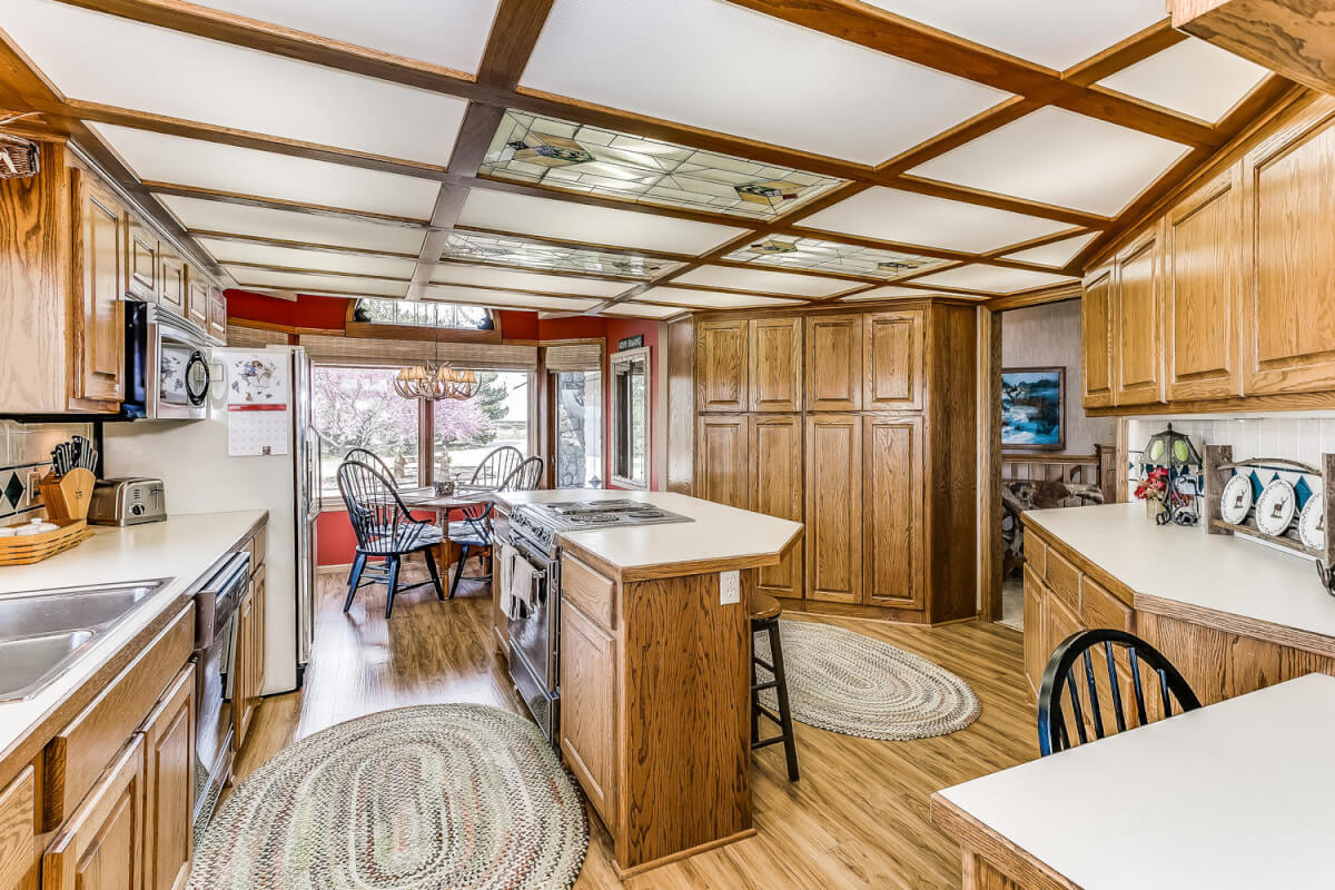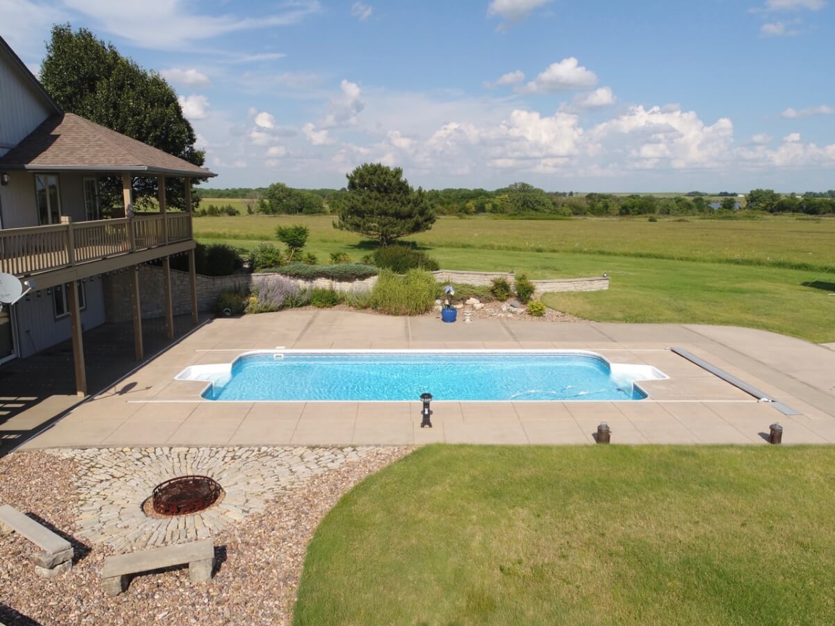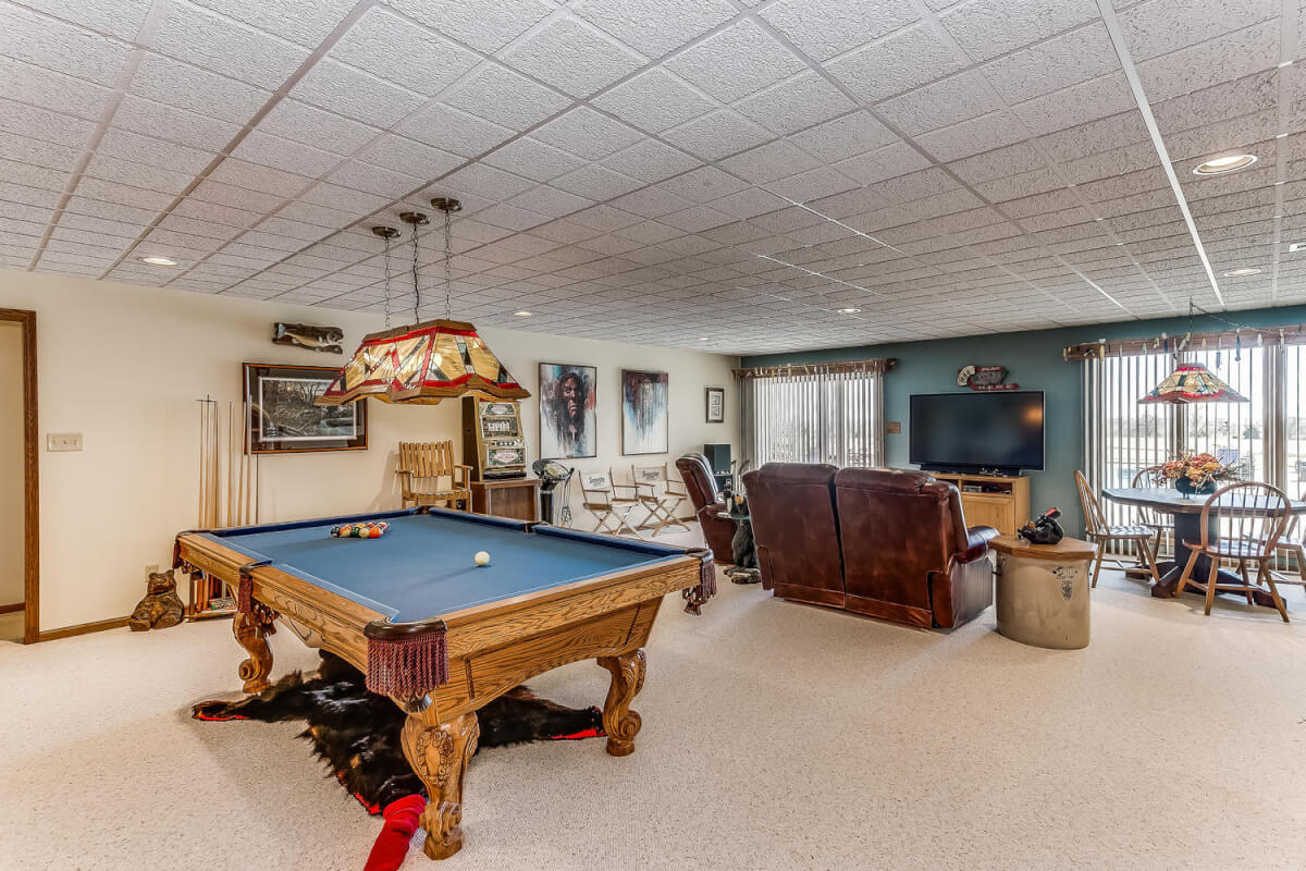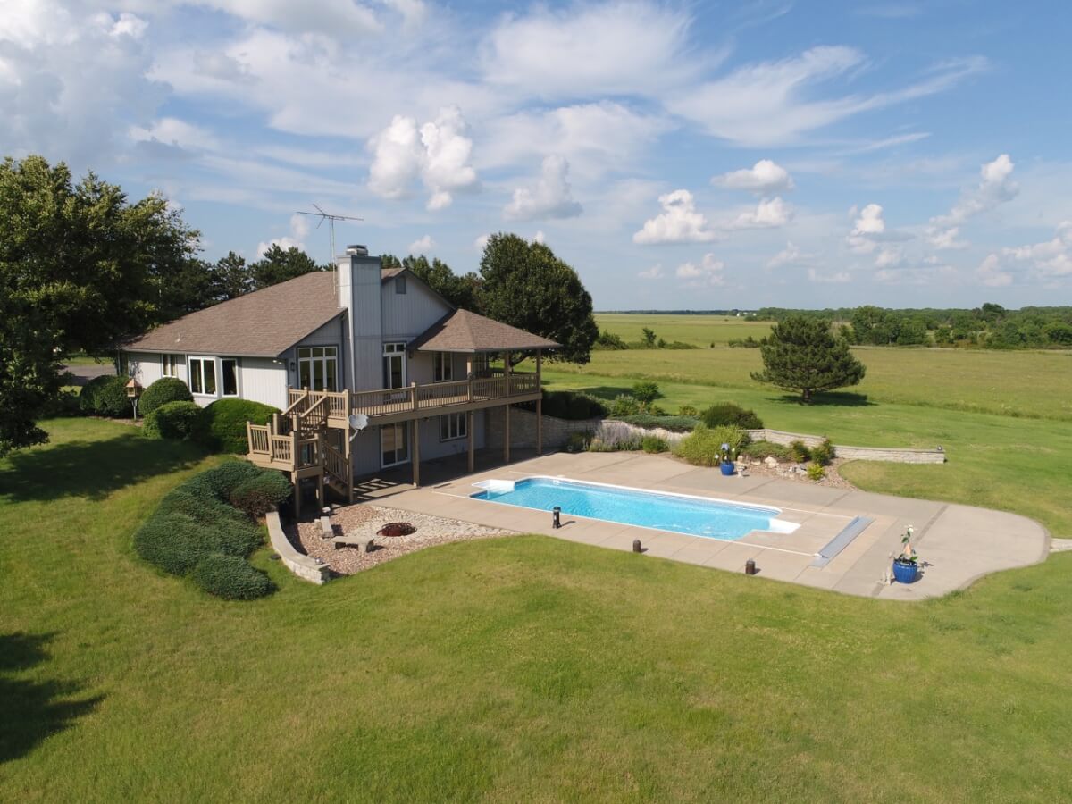 PROPERTY DESCRIPTION: Wildlife, fishing, hunting, boating, and outdoor recreational lodge-like get-away close to Wichita! Truly one of a kind 33+- acre property in which El Dorado Lake can be viewed from nearly every window of the house. Just think of the entertainment value of the back pool/patio area. The main level of the home offers a semi-open floor plan, master suite with jacuzzi tub, guest bedroom, full bath, and laundry/mud room with wash sink. The walk-out basement offers a huge rec/family room with great wet bar area, full bath, 2 bedrooms, and an additional bonus room. A 30’x24′ heated shop with pull through overhead doors offers great additional work room. The balance of the property consists primarily of hay meadow and don’t forget about the pond! Abundant wildlife frequent this property including deer, turkey, and quail. Now is the time to buy your slice of paradise.