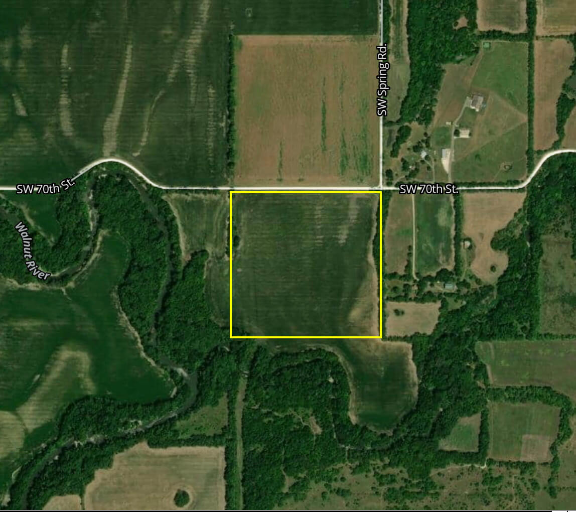 40+- Acres Butler County Walnut River Tillable Bottom Ground Between El Dorado & Augusta, Kansas