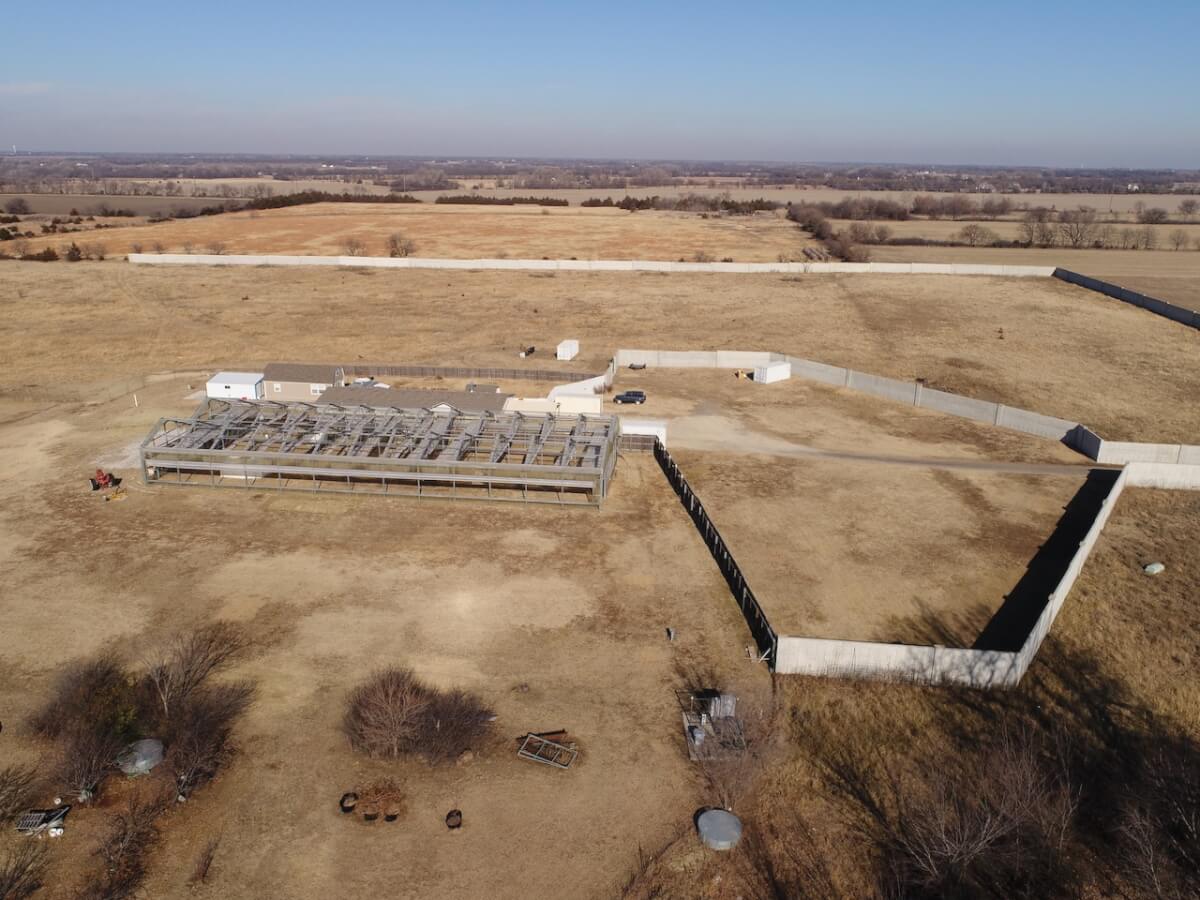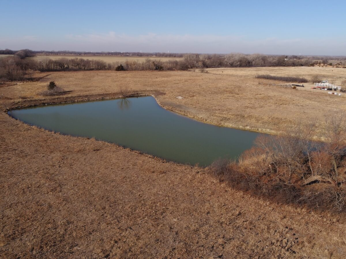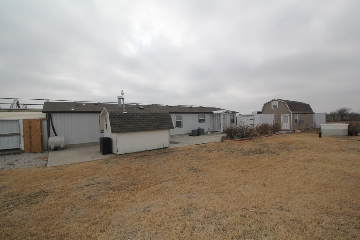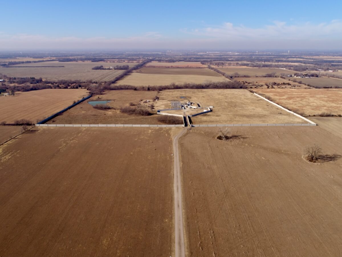 PROPERTY DESCRIPTION: Conveniently located just 3 miles north of HWY 254 on N Woodlawn, this 40 acre parcel offers incredible privacy and seclusion. Situated a quarter mile from Woodlawn and 77th St N, the property offers a 10′ concrete wall and iron gate on the eastern boundary, the concrete wall continues along the majority of the north and south boundaries. The 2009 Skyline built manufactured home provides over 2,400 square feet of finished living space on the main level. The home rests on a full unfinished basement, and FOUR additional windows wells making additional basement bedrooms a breeze. Property also boasts a large walk-in freezer, 150′ x 60′ greenhouse, and pond.