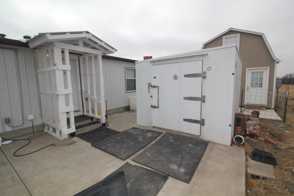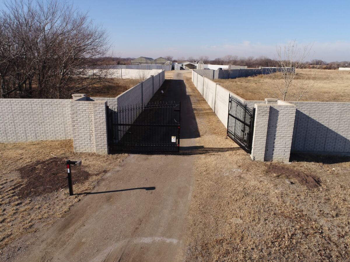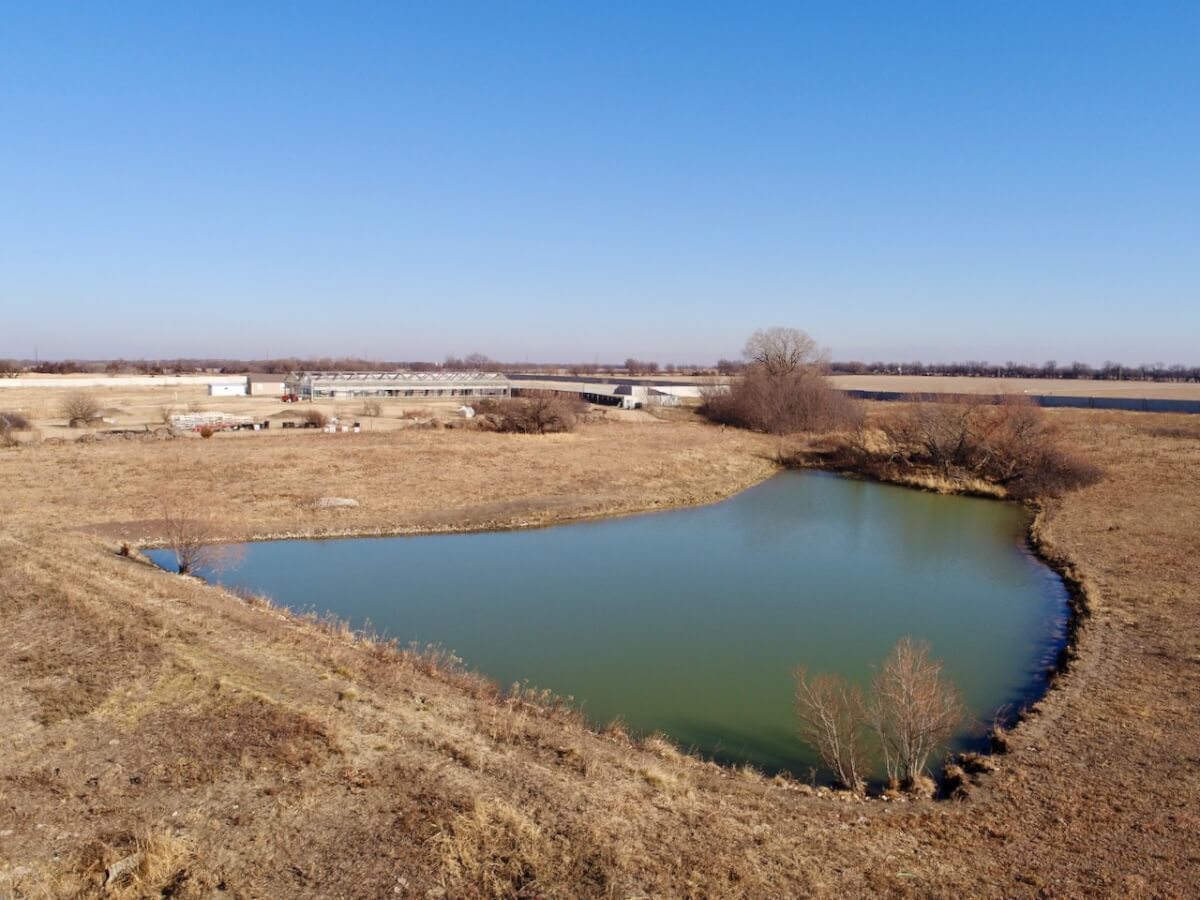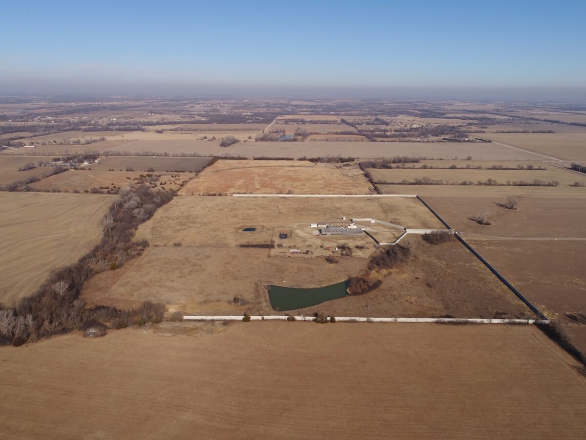 PROPERTY DESCRIPTION: Conveniently located just 3 miles north of HWY 254 on N Woodlawn, this 40 acre parcel offers incredible privacy and seclusion. Situated a quarter mile from Woodlawn and 77th St N, the property offers a 10′ concrete wall and iron gate on the eastern boundary, the concrete wall continues along the majority of the north and south boundaries. The 2009 Skyline built manufactured home provides over 2,400 square feet of finished living space on the main level. The home rests on a full unfinished basement, and FOUR additional windows wells making additional basement bedrooms a breeze. Property also boasts a large walk-in freezer, 150′ x 60′ greenhouse, and pond.
