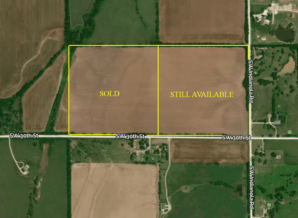 PROPERTY DESCRIPTION: 40+- acres of tillable farm ground currently planted to soybeans. There is a hedge row along the south and east boundary of the property. With electricity and rural water available, this would make an excellent agriculture investment or great place to build your dream home in the country! Located at the corner of Indianola Rd and SW 30th St., you are just 3/4 mile from blacktop HWY 254 down Indianola Rd., and just 1 1/4 mile from blacktop Main St in Benton down 30th. This really great opportunity to Invest In Land sits just 1 1/2 mile east of Stearman Field Airport and Stearman Airfield Bar & Grill.
