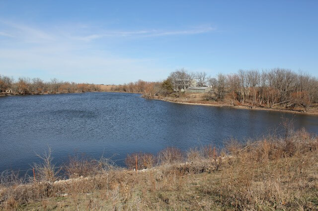 PROPERTY DESCRIPTION: 400+- acres of rolling Kansas Flint Hills pasture, a beautiful Watershed Lake tucked back in the hills with clear water and excellent fishing, a cabin overlooking the Lake, approximately 15 acres of tillable, and timber. Very secluded property with great blacktop frontage access. Very rarely do we see the opportunity to purchase such a high quality hunting, fishing, and agricultural tract with a Watershed Lake on the public market. An abundance of wildlife is present on the property, with regular sightings of deer, turkey, quail, and waterfowl. The beautiful clear water lake has a plentiful supply of healty largemouth bass. Don’t overlook the spillway behind the pond for excellent fishing as well…the water is so clear you can see the fish swimming around right now! The improvements on the property include a 2 bedroom 2 bath cabin built in 1944 overlooking the lake and some utility buildings for storage. The gated entryway provides good security and you cannot see the cabin or lake from the road, making this a perfect vacation home or weekend getaway!