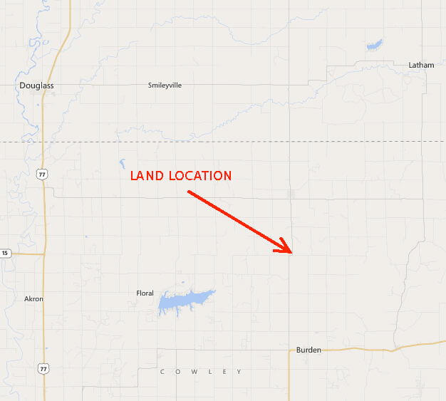 LAND LOCATION: 5 miles north of Burden, Ks on 211th Rd. OR 2 miles south of Atlanta, Ks on 211th Rd.