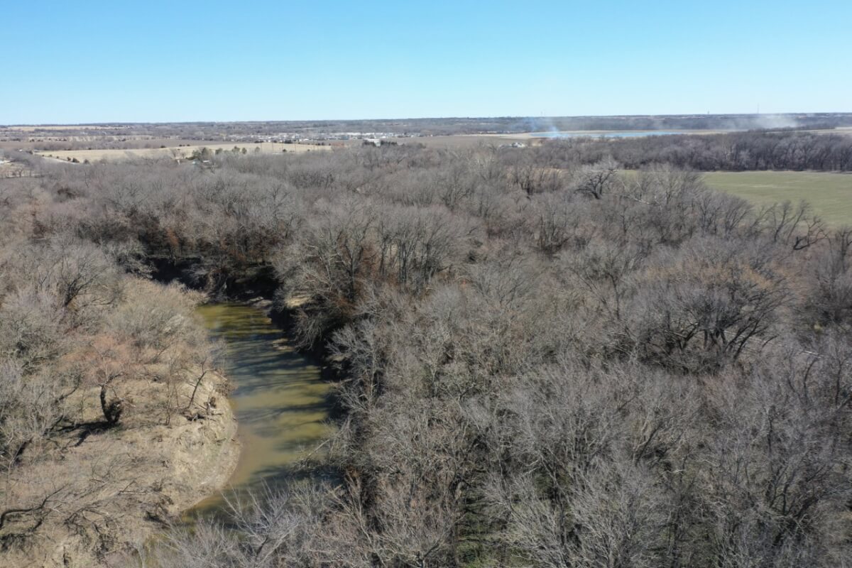 PROPERTY DESCRIPTION: 41.8 acres west of Towanda in Butler County, Kansas. This property has road frontage along the north and east, providing good access. There are 17 acres of Whitewater River tillable bottom ground, and the balance is timber and the Whitewater River. Timbered areas include very large mature Oak, Walnut, and Sycamore trees among others. Wildlife such as Kansas Whitetail Deer and Turkeys are abundant with excellent habitat. Fishing in the Whitewater River includes fish common in Kansas such as Largemouth Bass, Crappie, Channel Catfish, & Flathead Catfish. This truly is a recreation and outdoors paradise!