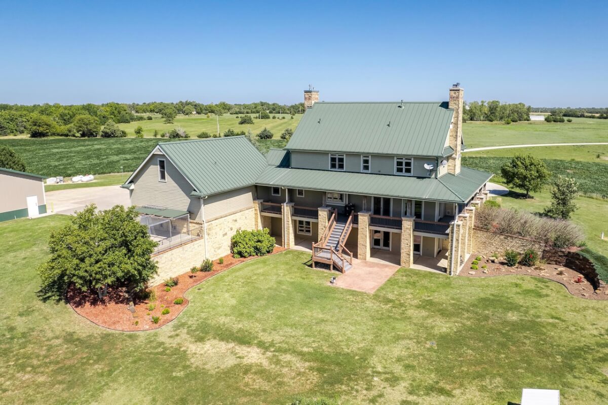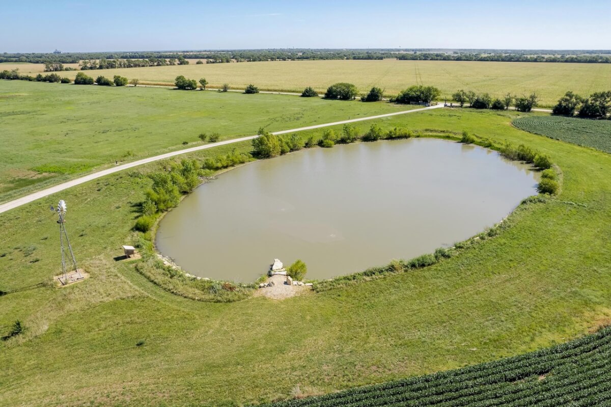 PROPERTY DESCRIPTION: 4 Bedroom 4 1/2 bath home on 39+- acres with a 1.5 acre stocked pond and approximately 36 acres of tillable farm ground currently planted to soybeans. The stocked fishing pond has mature channel catfish and a dual head aerator system that keeps the water open through the winter. Wildlife is abundant on the property with a solid harvest history of Kansas Whitetail Deer and Tom Turkeys. Quail calls are heard almost daily morning and evening! A 40′ x 30′ metal building with concrete floor and electric provides an excellent place for extra vehicles, equipment, tools, or the fun accessories you’ll accumulate to fully enjoy this premier property. Extras include 13KW Schnieder controlled solar power system PLUS auto Generac backup. Location is perfect if you desire a quiet rural setting, but require quick and easy access to the convenience of Wichita. Just 3 miles east of Greenwich Rd and minutes from the amenities of east Wichita…you rarely see an opportunity to duplicate this setup! Interior amenities are endless…3 master suites, quality flooring and countertops, multiple bar areas, library, guns safes, fireplaces, 16 camera CC security system…the list goes on! Main floor flow is excellent for entertaining! 3/4 of the house has a wrap around porch for outdoor relaxing and enjoyment, and the views are great from that viewpoint as well as from the many upstairs windows overlooking the property. It’s virtually impossible to recreate anything close to this turn key property in Sedgwick County. Schedule a time to look today, you won’t be disappointed!