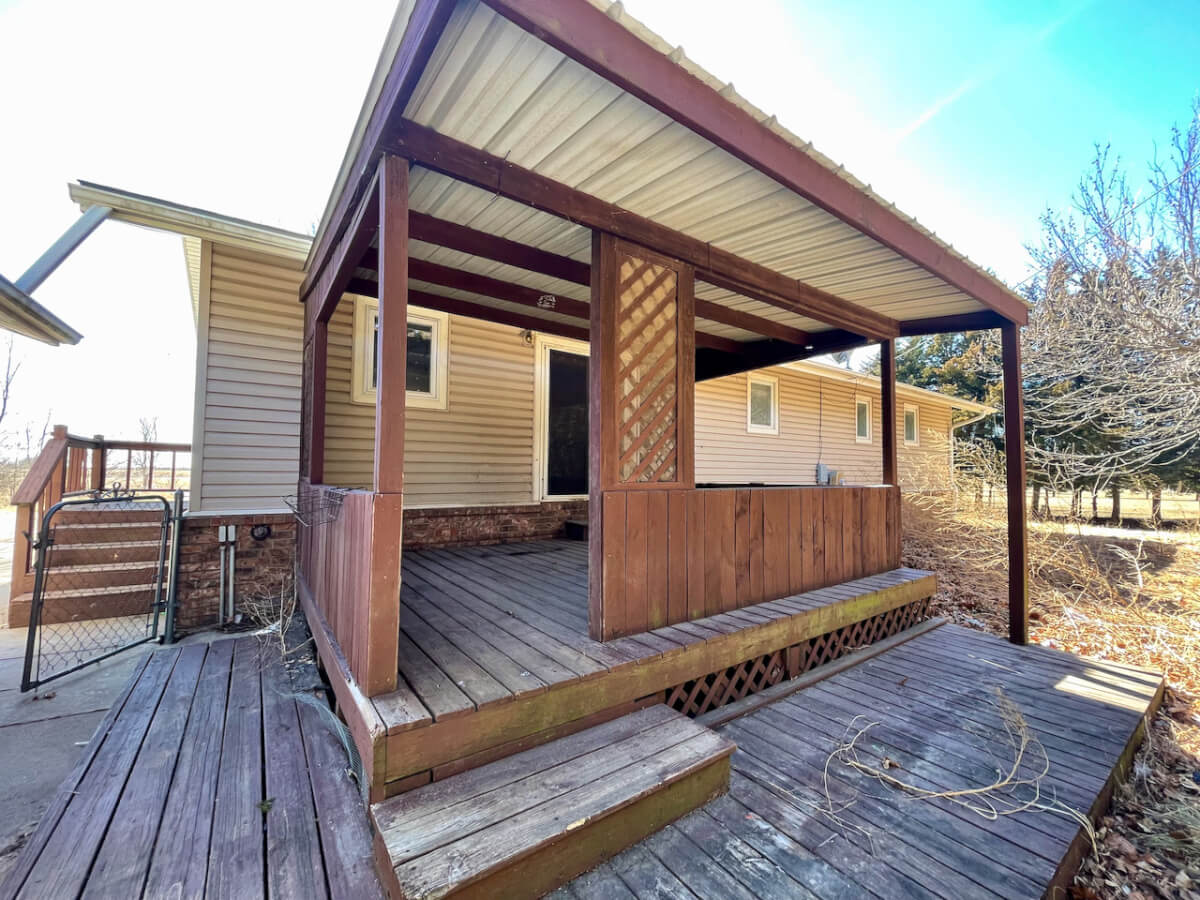 PROPERTY DESCRIPTION: Calling all investors, contractors, and owner-occupants looking for instant equity! 2021 Butler County valuation is 169,900! This 4 bedroom 1.5 bathroom home is located just minutes west of El Dorado and is ready for your TLC. The 1981 built home is 54′ x 28′ and offers a full basement for additional living space. Property also features a detached 2 car garage, covered back deck and fenced in backyard.