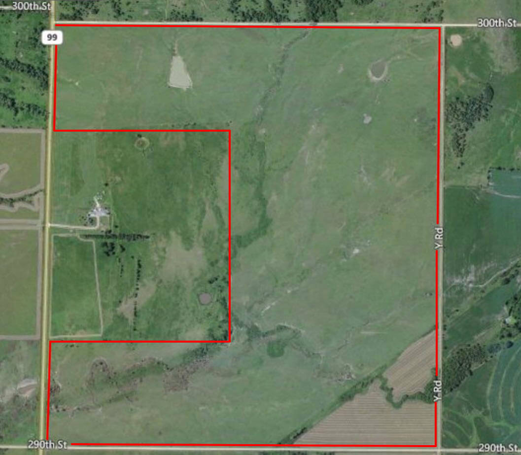 PROPERTY DESCRIPTION: 447.8 acres of excellent rolling Greenwood County Kansas pasture with 2 ponds, multiple wet weather draws, and blacktop frontage. Immediate possession will be given to the Buyer! There is a small set of loading pens on the east end of the property. Access is excellent with blacktop road HWY 99 along the west, and township roads along the other three sides. There is approximately 30 acres used as hay meadow on the southeast corner of the property, separated from the livestock grazing pasture by an abandoned railroad. A portion of the fence has new pipe corner and new steel posts and barbed wire. The balance of the fence is average to above average. Consider this great tract of pasture for your Livestock Operation or Investment Portfolio.