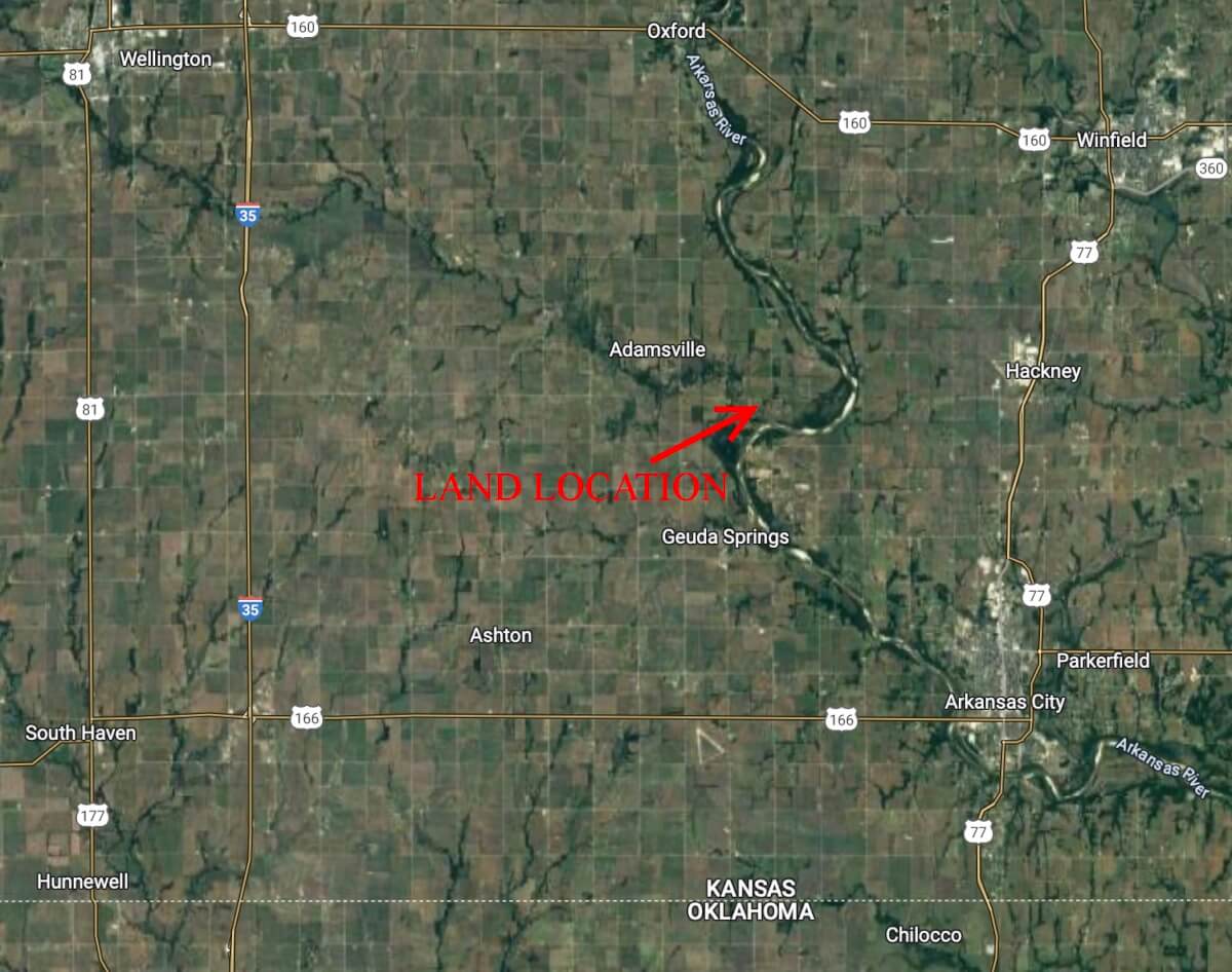 PROPERTY DESCRIPTION: 156.5 acres along the Arkansas River southwest of Winfield in Cowley County, Kansas. This diverse property offers tillable farm ground, pasture most recently utilized as hay meadow, and trees. There is a long winding pond or slough in the central portion of the property, and the southeast corner of this land tract touches the Arkansas River. If you like Kansas Whitetail Deer or turkey hunting, this property offers a consistent population of both!
