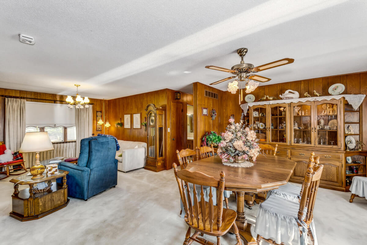 PROPERTY DESCRIPTION: Timeless ranch style home on 1.3 acres with large detached 3-car garage and in ground pool with new liner! On blacktop and located just minutes north of El Dorado, this property offers so many amenities that are difficult to find on small acreage. All appliances stay in the spacious kitchen. Living/dining combo offers lots of room for entertaining, in addition to a sun porch and charming breezeway. Two full main floor bathrooms and a third full bath in the basement! Basement also includes a spacious family room with bar and beautiful fireplace. This home has been wonderfully maintained and has been owned by the same family since it was built- come & see this beautiful property today!
