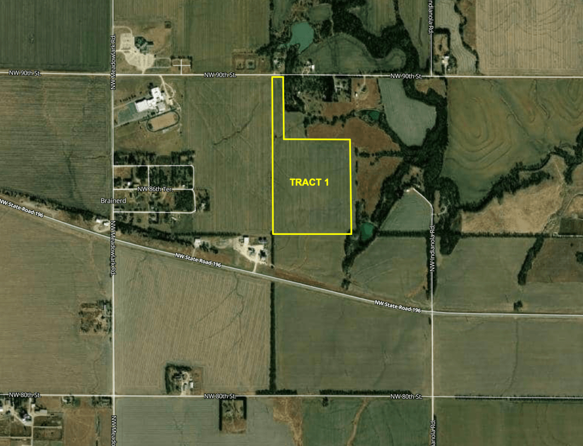 LAND LOCATION: From Highway 196 between Whitewater and Potwin, north on Meadowlark Rd. to NW 90th St., 1/2 mile east to the property.