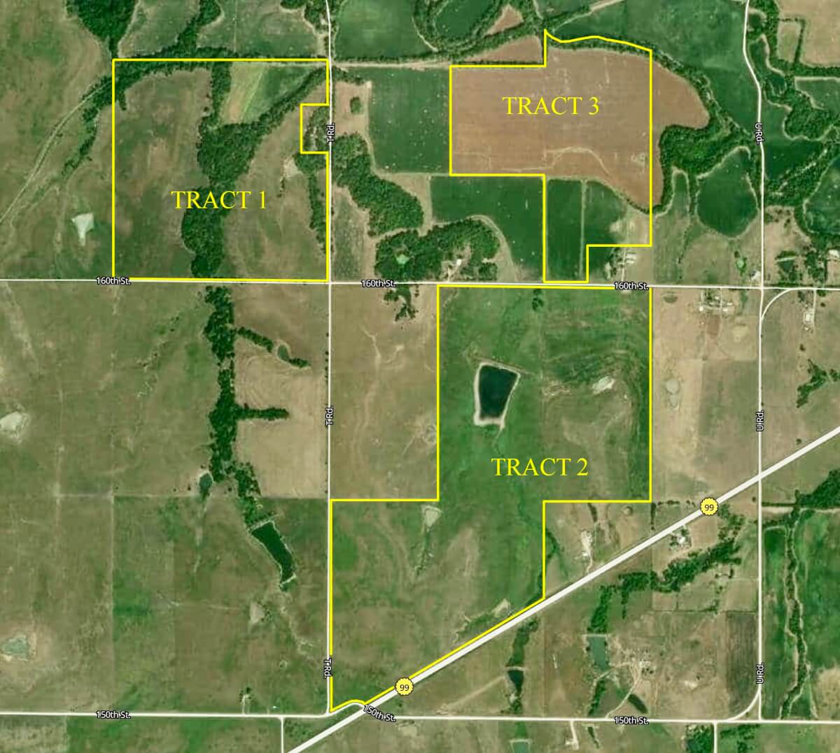 LAND LOCATION: From Eureka 3 1/4 miles east on HWY 54 to T Rd., north 1 mile to 160th St., east 1/2 mile to the property.