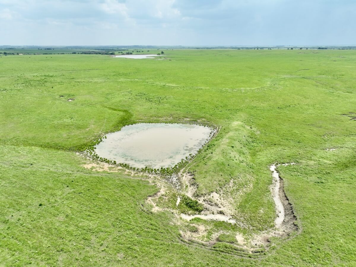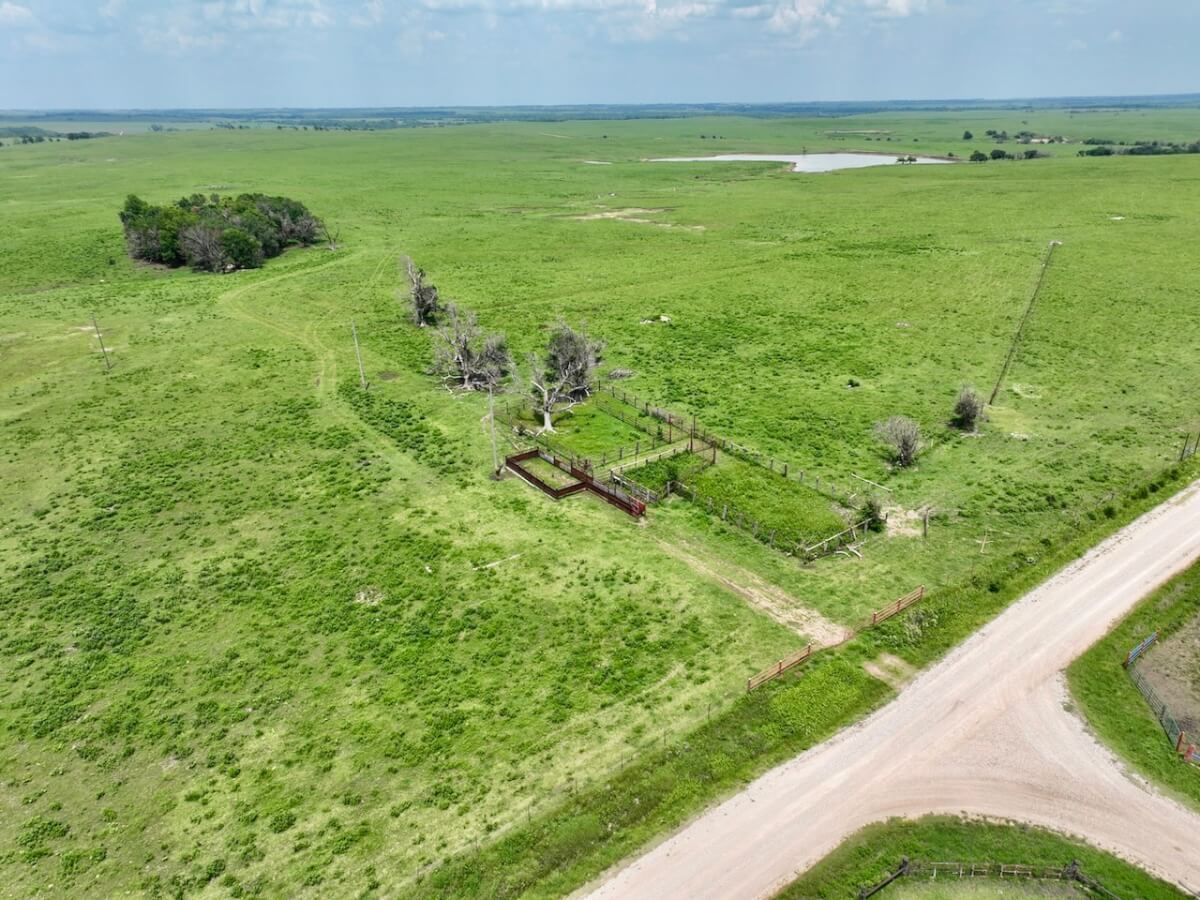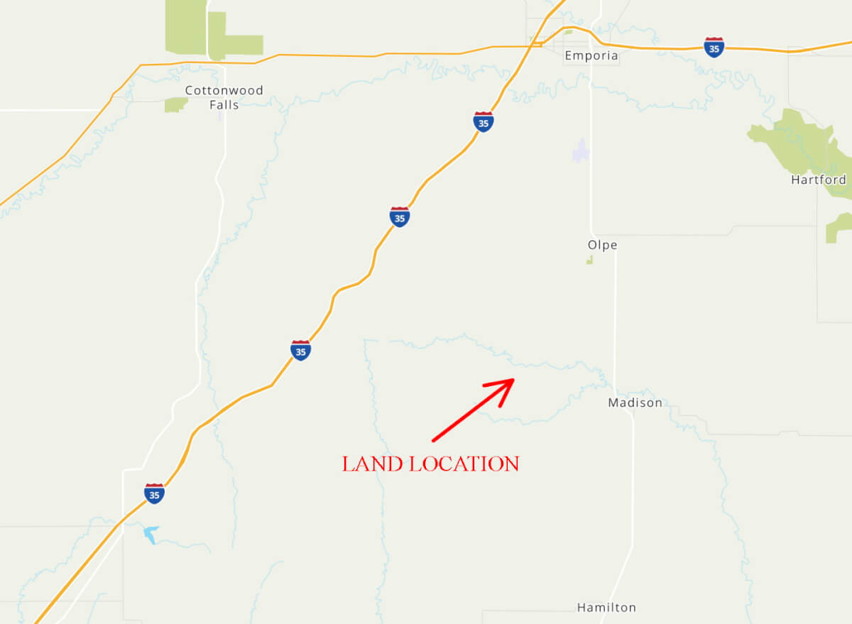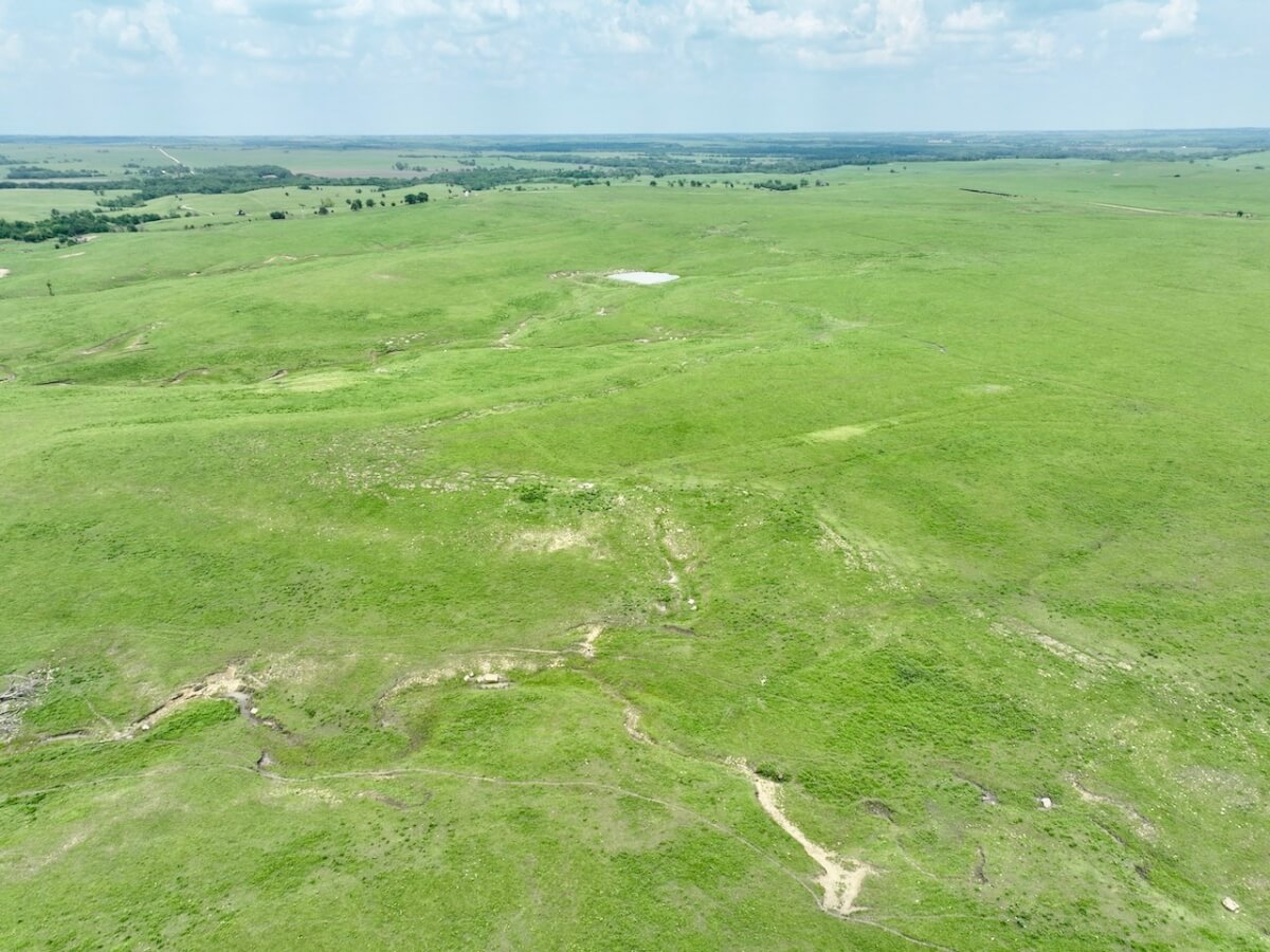 PROPERTY DESCRIPTION: 595 acres of native Flint Hills pasture west of Madison in Greenwood County, Kansas. Water is provided by an 8 1/2 acre pond, another small pond, and multiple wet weather draws. The large pond is stocked with fish including largemouth bass and channel catfish, an added recreation bonus to this high quality cattle grazing opportunity. Perimeter fences around the property consist of steel posts and 5 strands of barbed wire. There is a set of livestock working pens centrally located at the south end of the property. Access is provided by a good township gravel road all along the south boundary and a minimal maintenance road along the east boundary.
