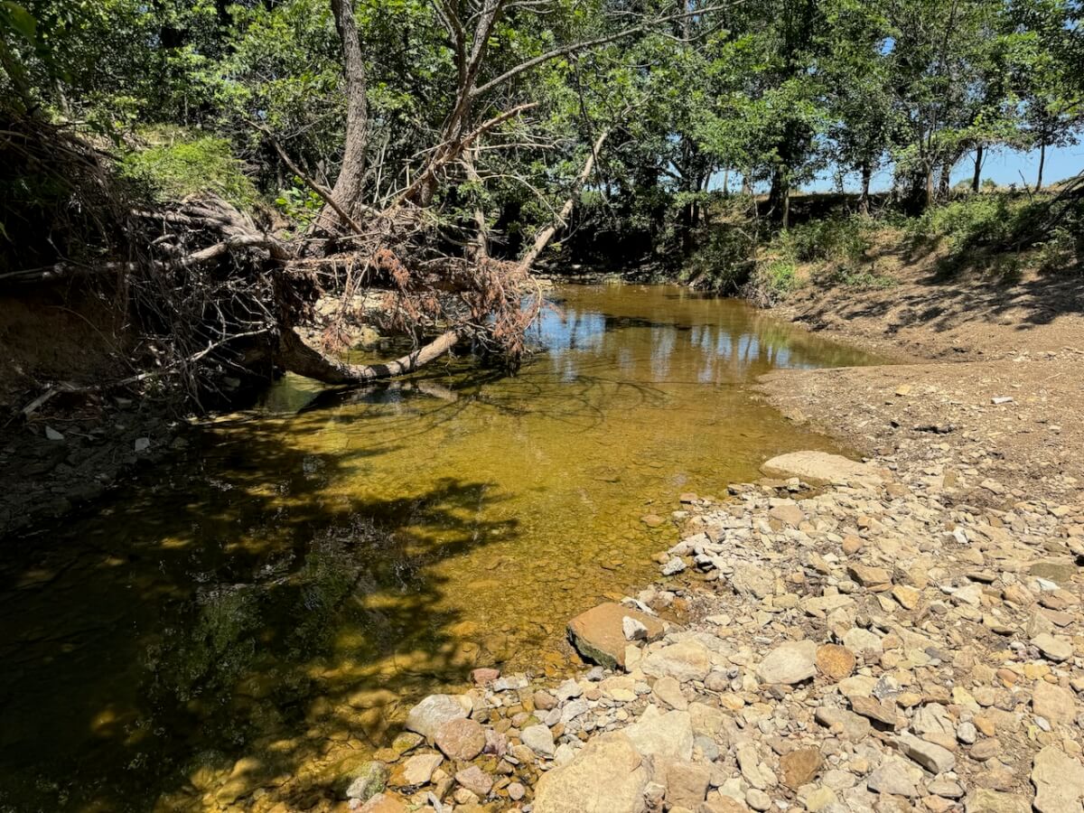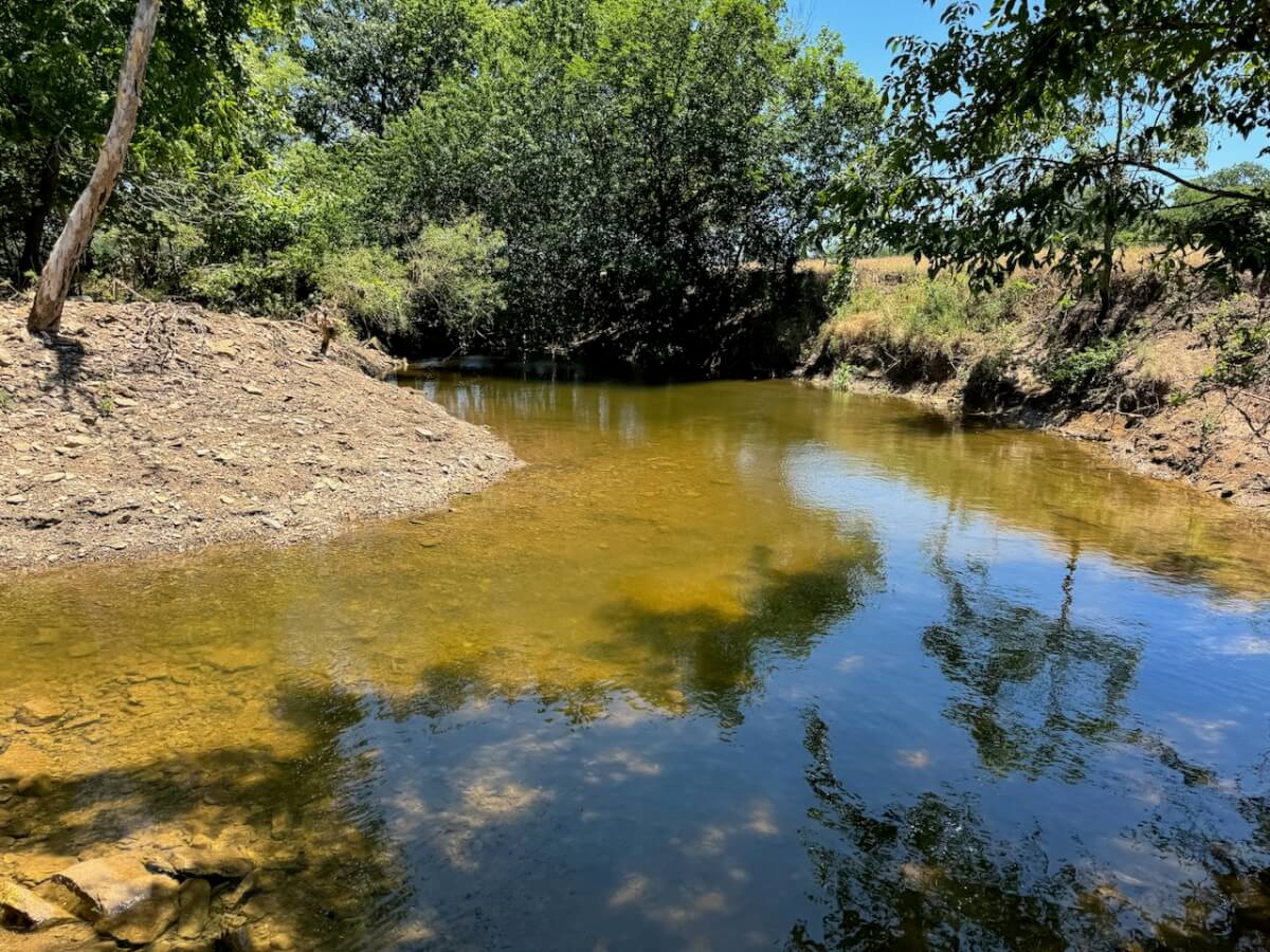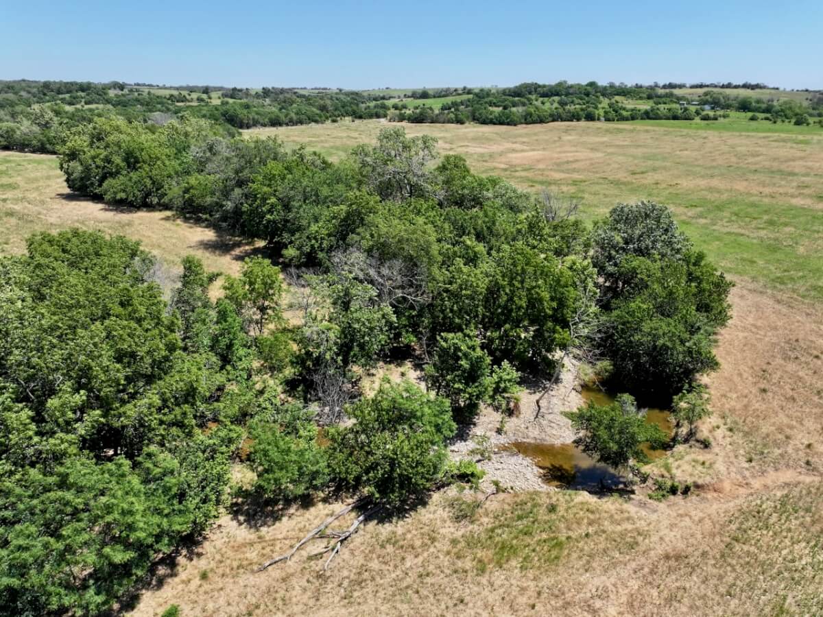 PROPERTY DESCRIPTION: 60+- acres located northeast of Sedan in Chautauqua County, Kansas. A main branch of Bachelor Creek enters the property from the north, coursing through the center of the property before exiting to the south. This crystal clear water creek is beaming with life that includes bass, bluegill, and other fish and minnows that thrive in these clean waters of the Kansas Chautauqua Hills. There is a small pond located in a thick patch of timber at the northwest corner of the property. An old tin barn and two metal grain bins along the west boundary would make excellent repurposing materials for a new cabin or barn home on the property! A majority of the property is tillable farm ground that could be utilized for row-crop, brome, fescue, alfalfa or possibly CRP. Of the 47+- acres of tillable, over 70% of it is class I and class II soils. The balance of the property consists of trees along and around Bachelor Creek such as Walnut and Sycamore among others. There is a 4″ rural water line along Road 23 to the west, and a 6″ rural water line along Saddle Rd to the north. Excellent opportunity to Invest In Land!
