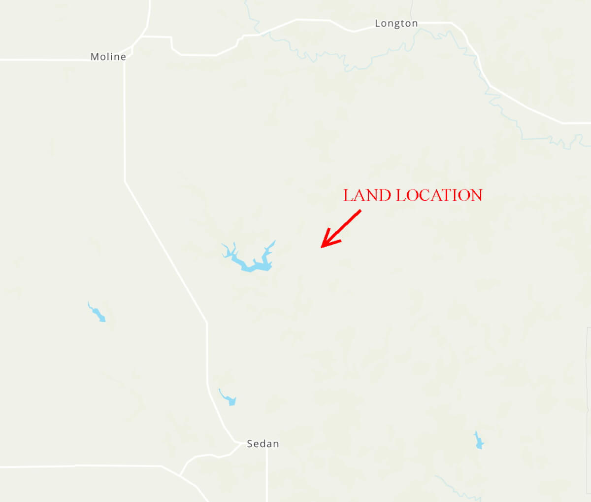 LAND LOCATION: From HWY 99 northwest of Sedan, east/souteast on Quivira Rd approximately 6 1/2 miles to Road 22, north approximately 1 3/4 miles to Quivira Rd, east 85/100 of a mile to Road 23, north 85/100 of a mile to the property.
