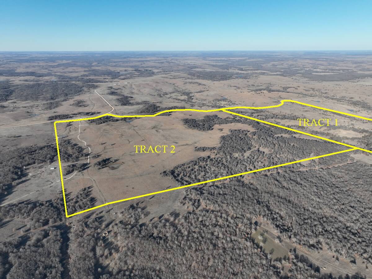TRACT 1 LEGAL DESCRIPTION: The North Half of the Southeast Quarter, the Southwest Quarter of the Southeast Quarter, and all that part of the Northeast Quarter of Section 30 lying South of the County Road, All in Township 33 South, Range 13 East of the 6th P.M., Chautauqua County, Kansas.