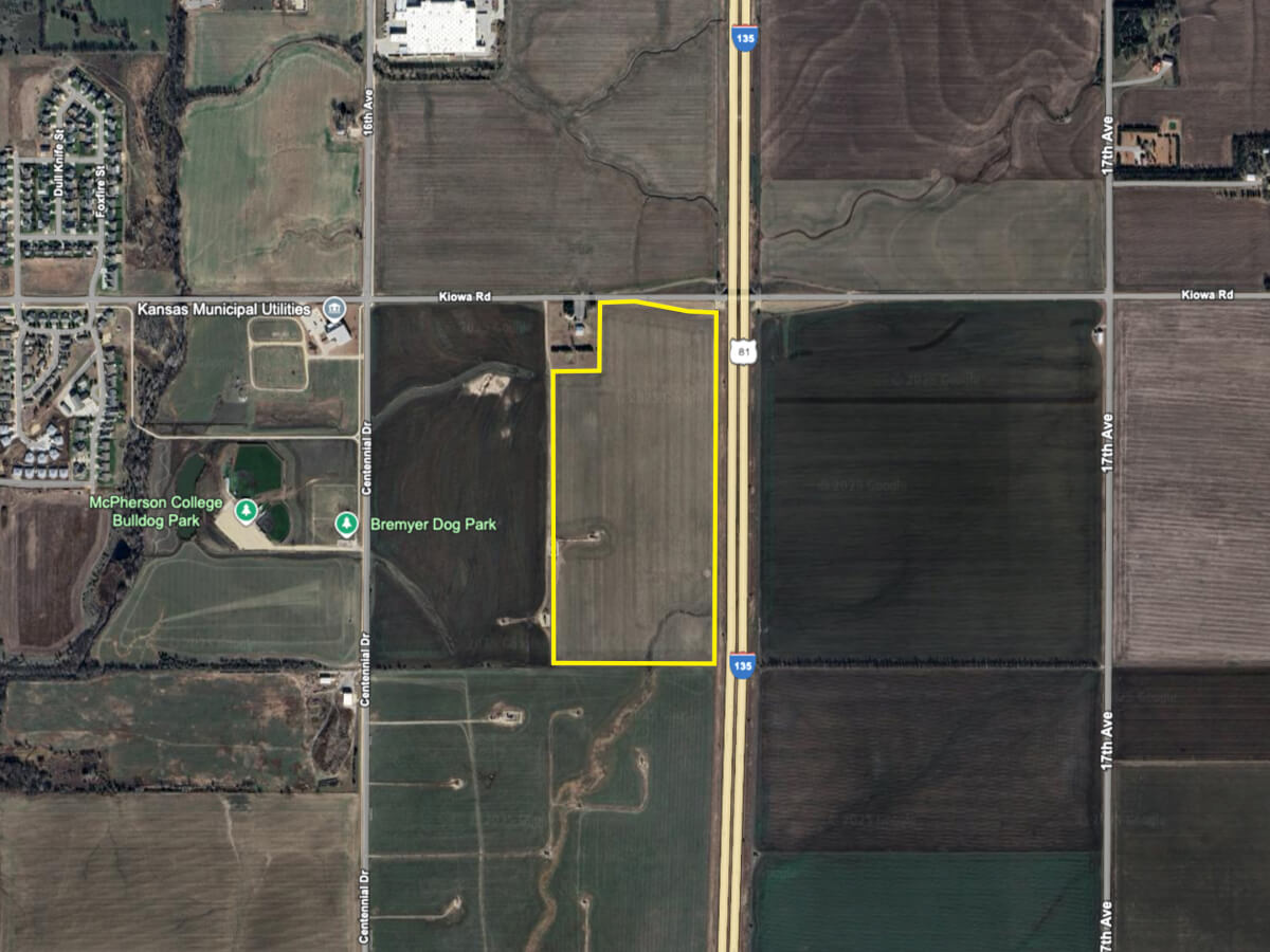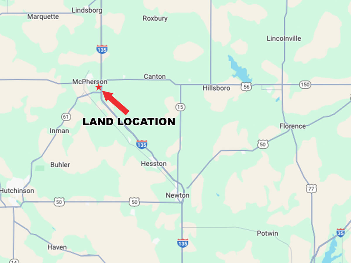 LAND LOCATION FROM MCPHERSON: Located at the southwest corner of A Avenue and Interstate 135.