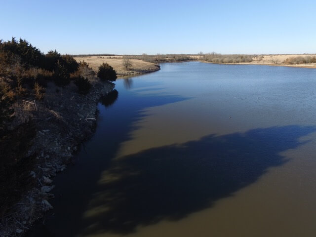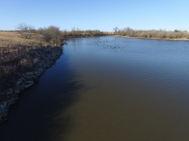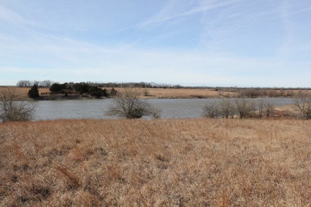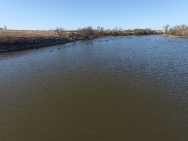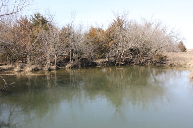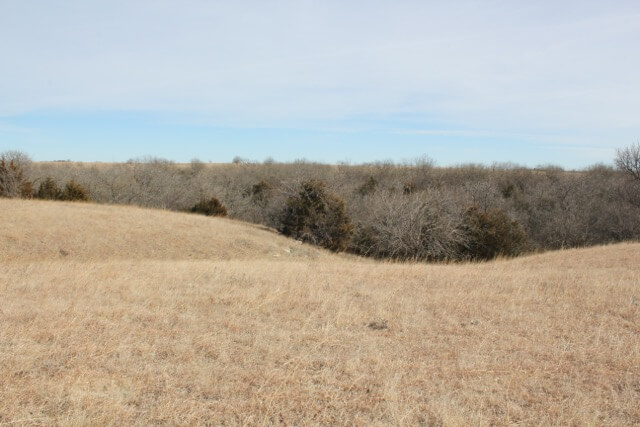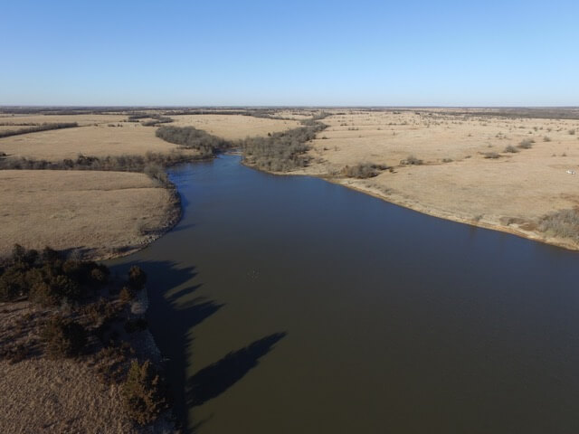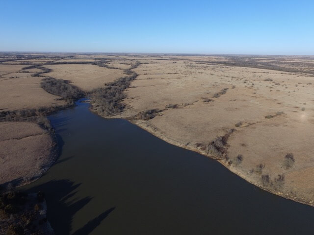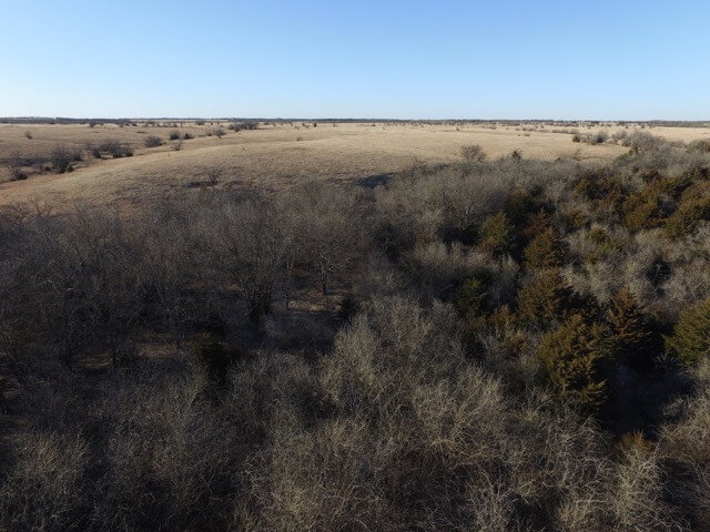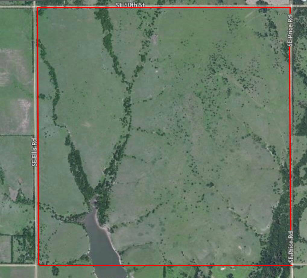 PROPERTY DESCRIPTION: 640+- acres of native Flint Hills cattle grazing pasture with a spring fed live creek, large portion of a Watershed Lake, several stock ponds, timber lined draws, and abundant wildlife. There is over 2 miles of brand new 5 barbed wire steel post fence with pipe corners, and the remaining fence is all good barbed wired and steel post fence. A new large pipe sorting pen has been built on the north end of the property. It is very rare to find a full square section of Flint Hills pasture in this part of Butler County Kansas, especially with so many features and character.