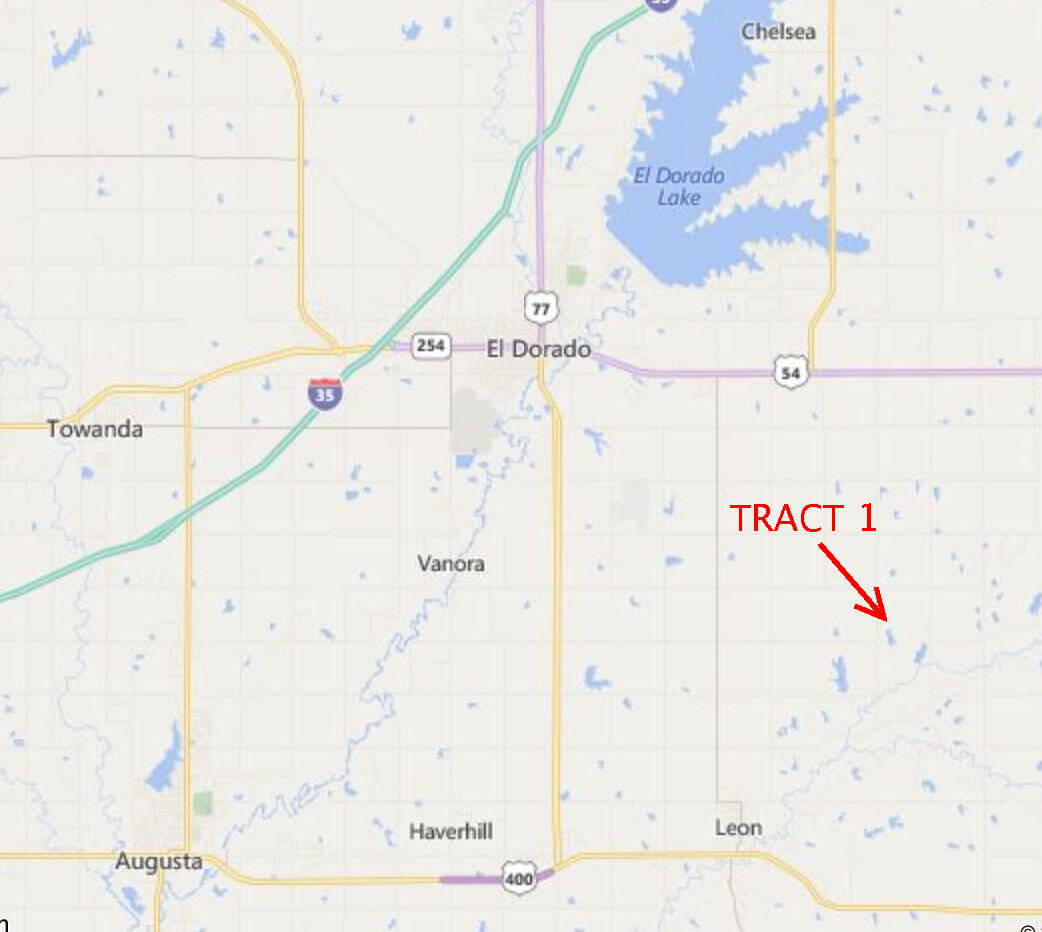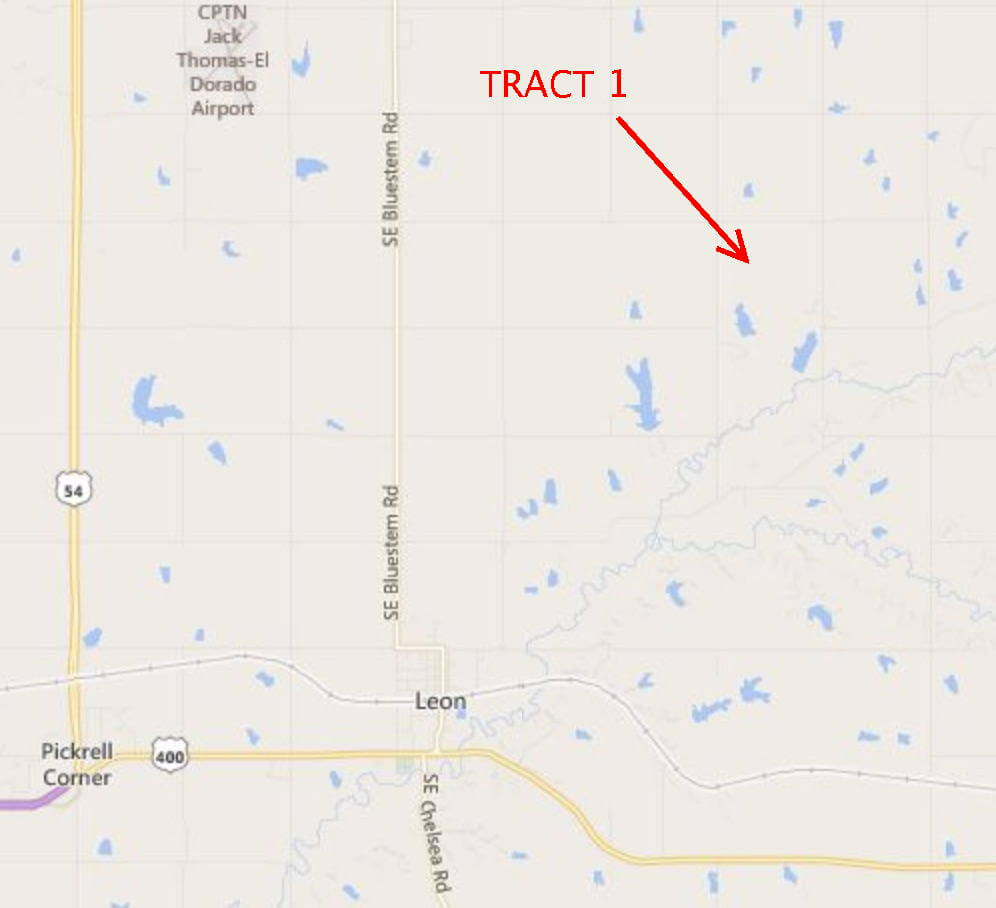 LAND LOCATION: From Leon, 4 Miles North on Bluestem Rd, 3 Miles East on SE 50th St.