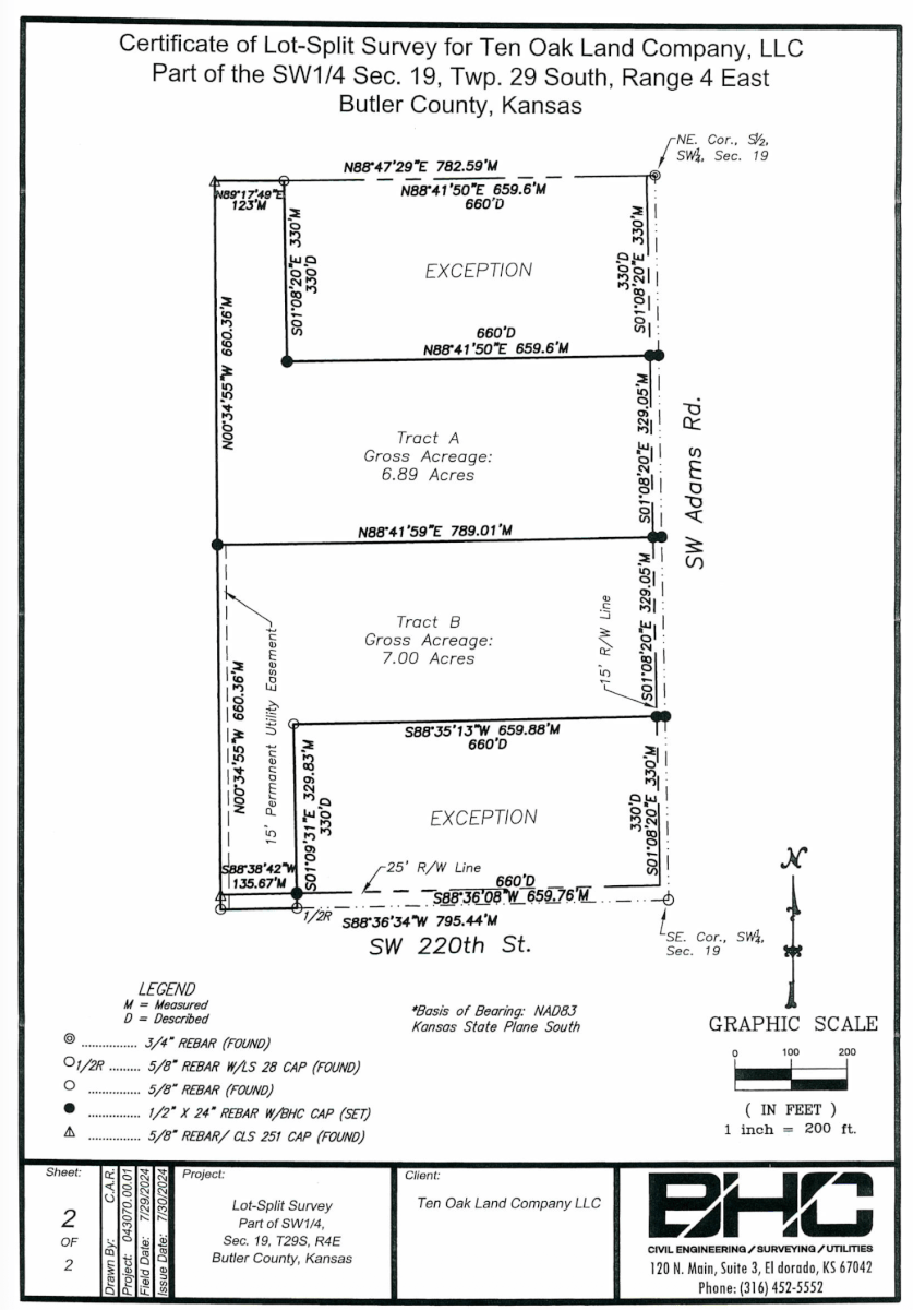 LEGAL DESCRIPTION: Tract A(6.89 Acres) and Tract B(7 Acres) in the Southwest 1/4 of Section 19, Township 29 South, Range 4 East, Butler County Kansas