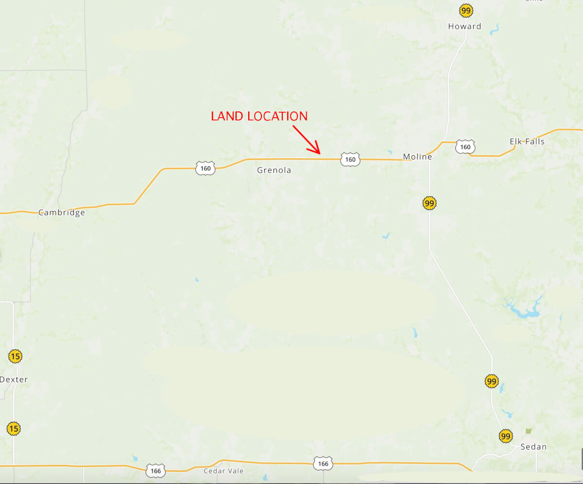 LAND LOCATION: 4 Miles West of Moline Ks on HWY 160 OR 3 Miles East of Grenola Ks on HWY 160.