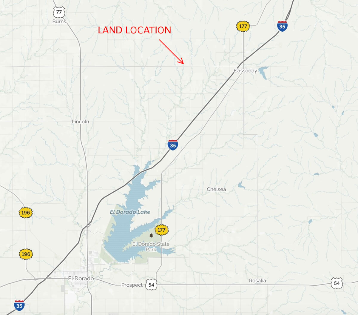 LAND LOCATION: 4 miles west of Cassoday on 150th. Commonly known as 6488 NE 150th St, Cassoday, KS 66842.