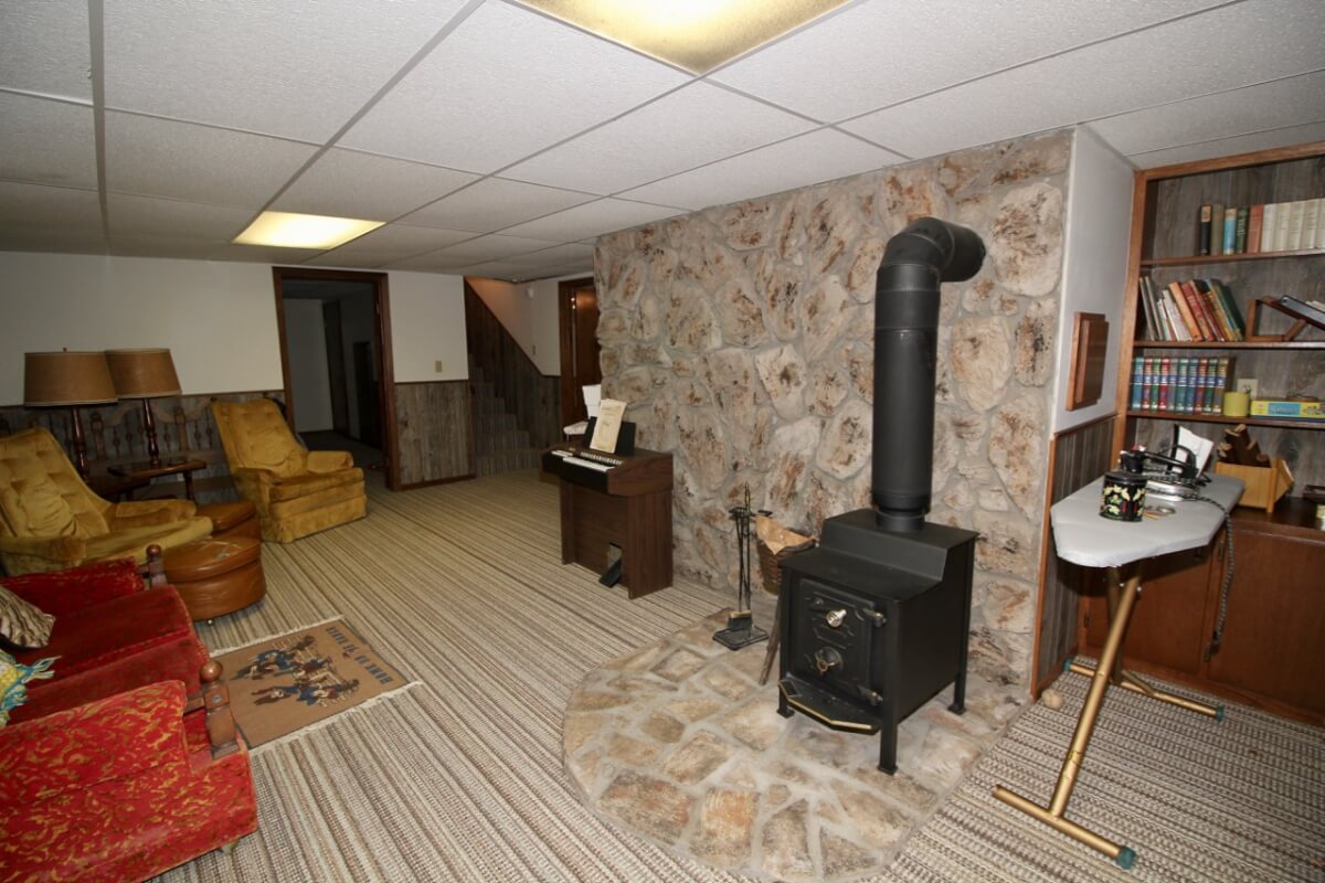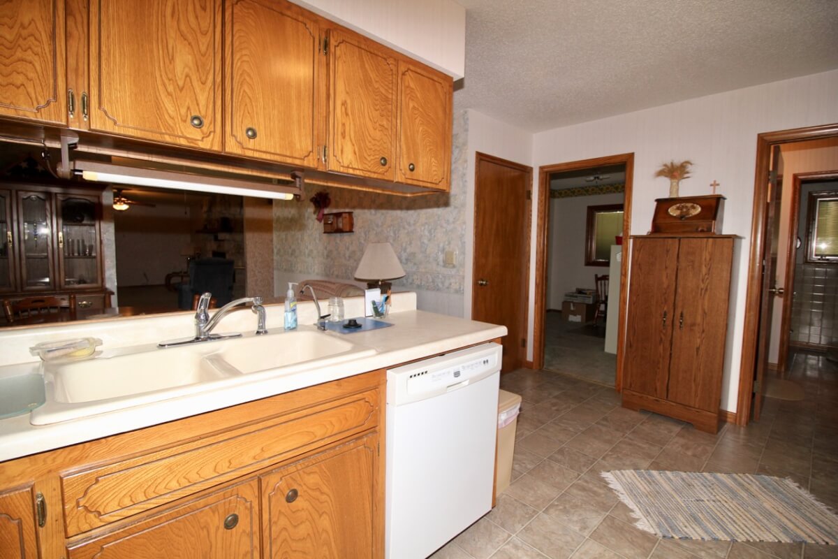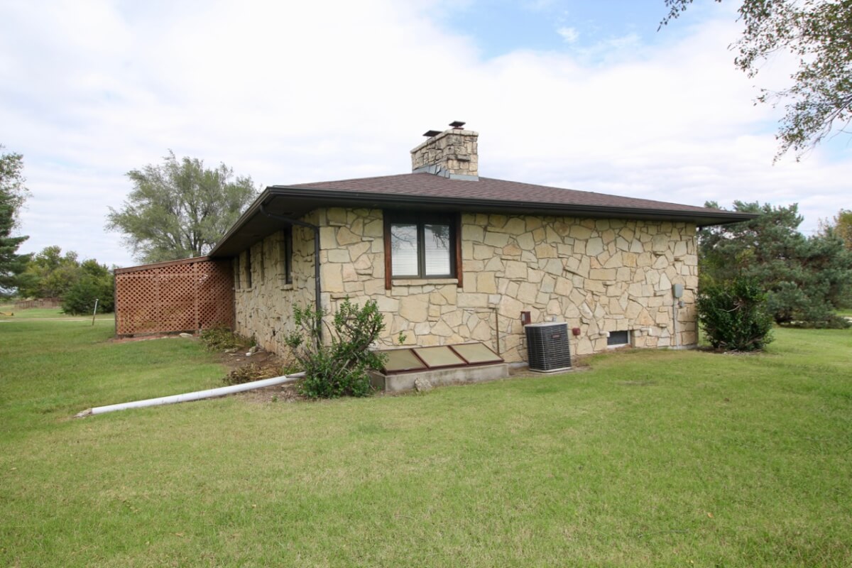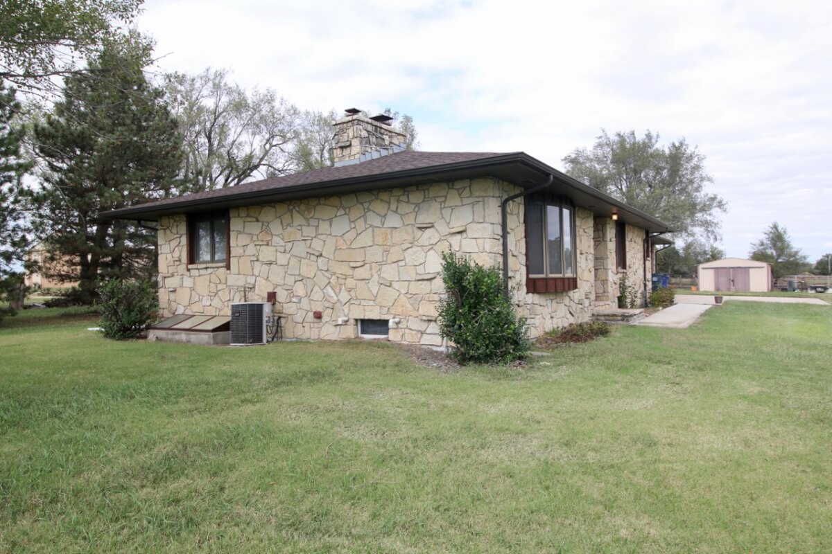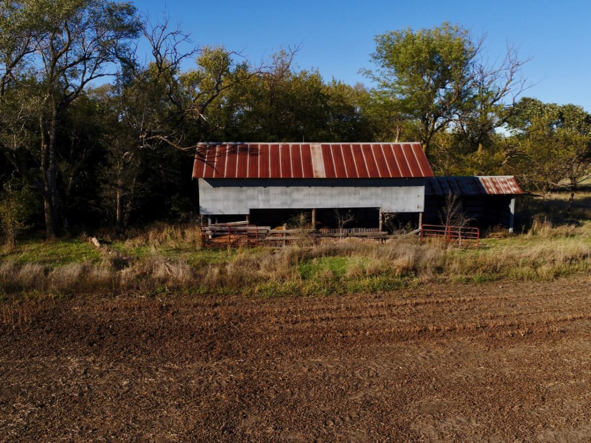 IMPROVEMENTS: 3 bedroom 2 bath Native Limestone house built in 1983 with 1440 square feet of above ground finished living area. The main floor has a kitchen/dining room combo, large living room, fireplace, and laundry room. There is a nice enclosed patio between the house and 2 car garage. The basement has a living area, good storage, and some potential bedroom areas. Buildings include a 96′ x 54’metal building with mostly concrete floor and other miscellaneous hay barns and sheds. The house is on electric, water well, and lagoon.