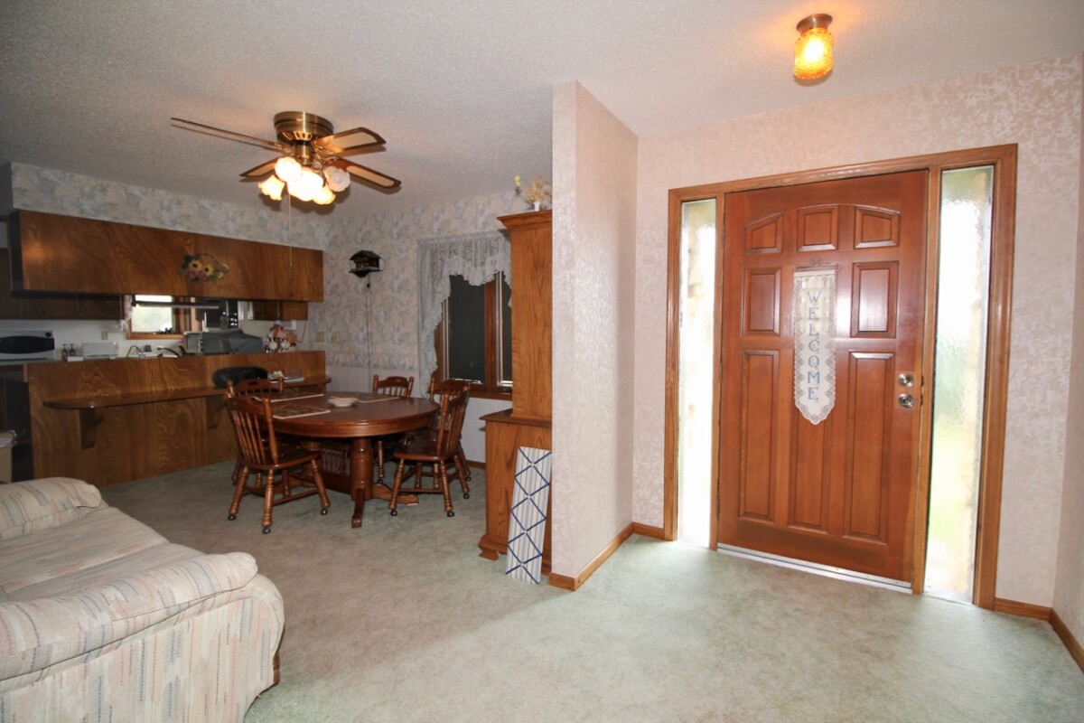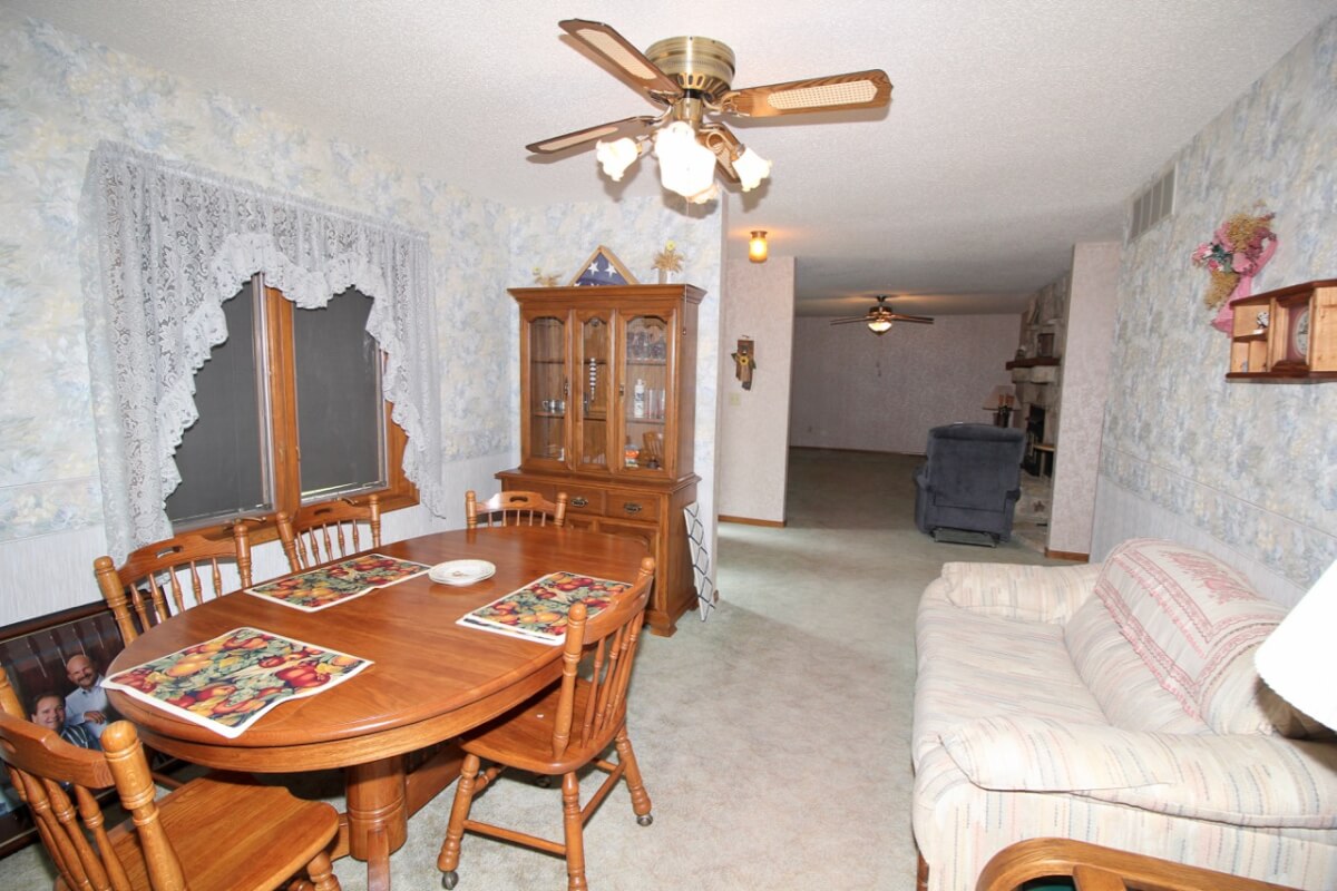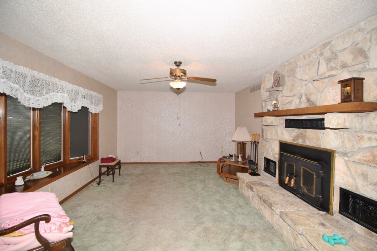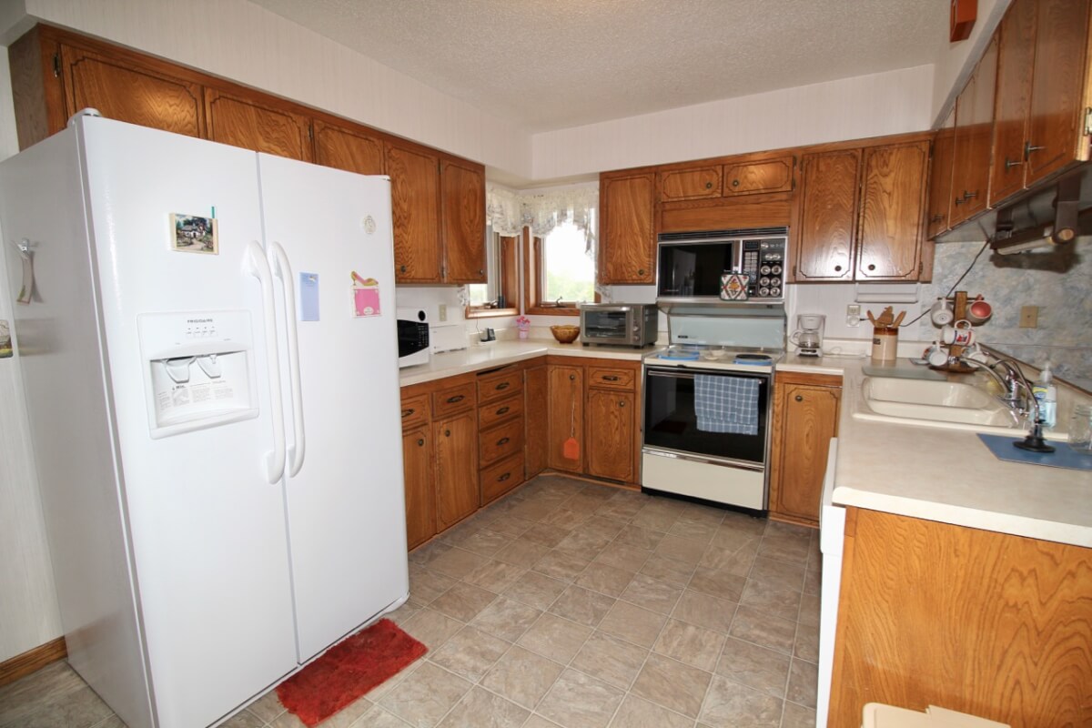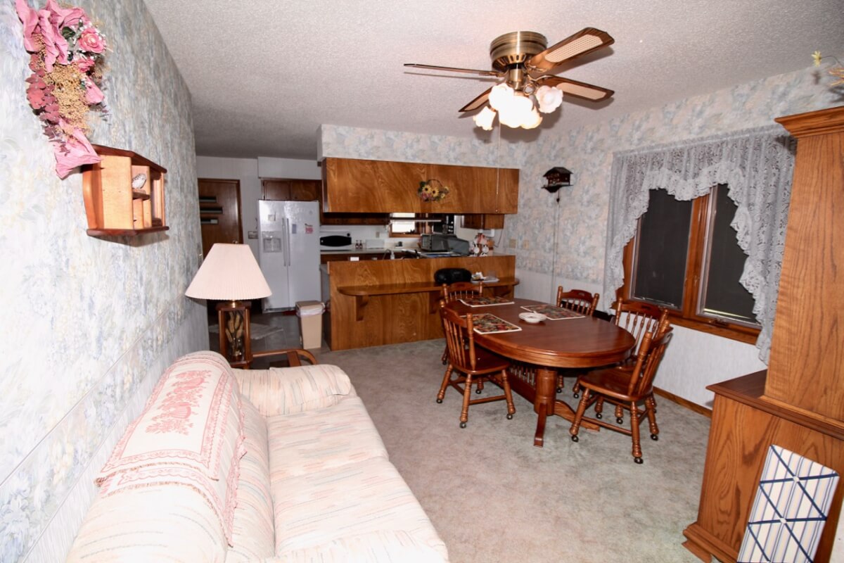 IMPROVEMENTS: 3 bedroom 2 bath Native Limestone house built in 1983 with 1440 square feet of above ground finished living area. The main floor has a kitchen/dining room combo, large living room, fireplace, and laundry room. There is a nice enclosed patio between the house and 2 car garage. The basement has a living area, good storage, and some potential bedroom areas. Buildings include a 96′ x 54’metal building with mostly concrete floor and other miscellaneous hay barns and sheds. The house is on electric, water well, and lagoon.