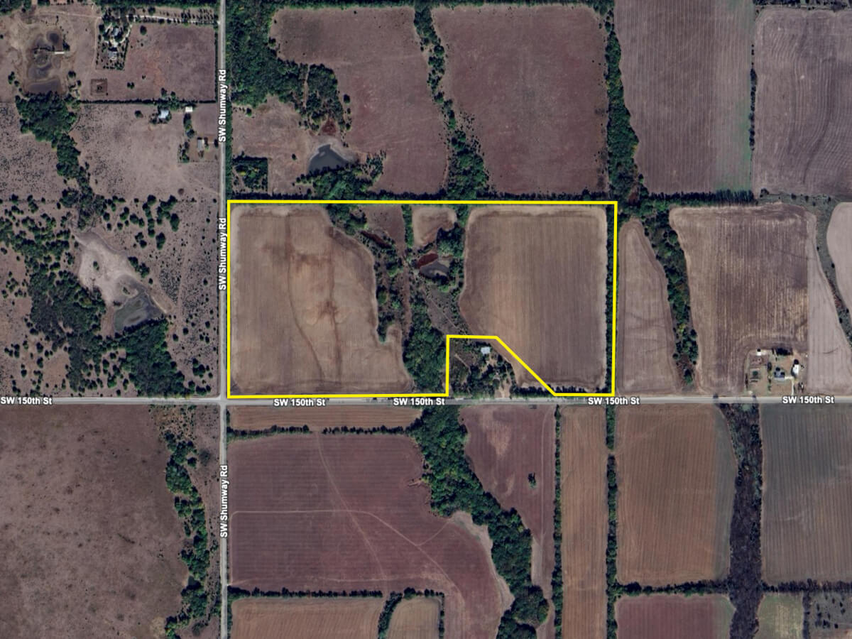PROPERTY DESCRIPTION: 72.75 acres of diverse land located south of Augusta in Butler County, Kansas. If you are looking for a nice combination of agriculture and wildlife habitat, this property has all that and then some! Two tillable farm fields are split with trees, brush, food plot, pasture & a pond running right down the middle. Access is provided by Shumway on the west and SW 150th on the south. There is currently an Agriculture Preservation Overlay on the property, which prevents a residence being built on the property until public sewer is available but would allow agriculture structures such as a building or barn. With a tillable farm ground income stream and good quail, deer, waterfowl & turkey hunting, this property offers a diverse opportunity to Invest In Land!