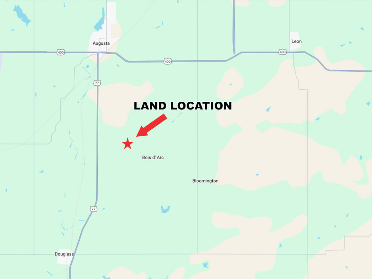 PROPERTY LOCATION: From Augusta, south 4 1/2 miles on HWY 77 to SW 150th, east 1 1/2 miles to the property.