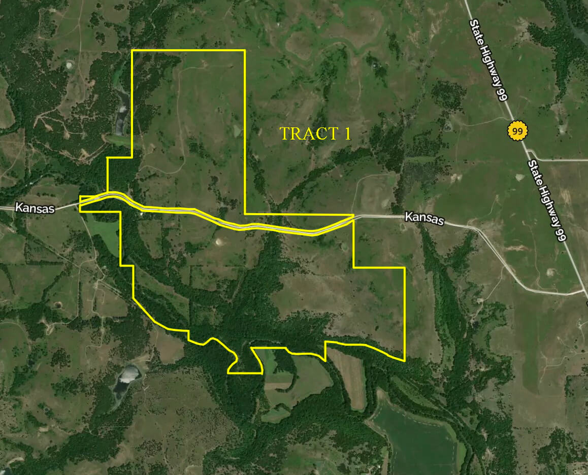 TRACT 1: 726.7 Acres Chautauqua County, Kansas Land Northwest of Sedan Hunting Caney Creek Hills