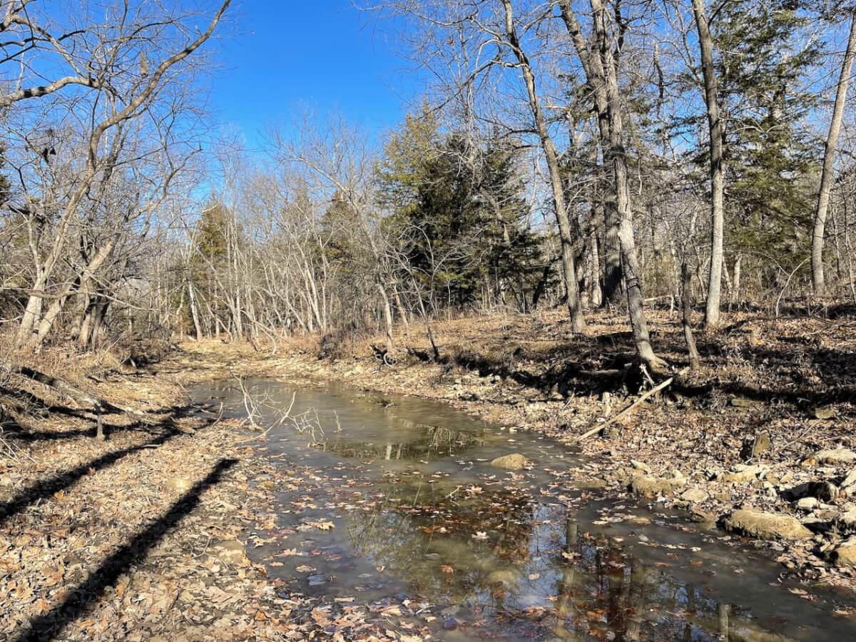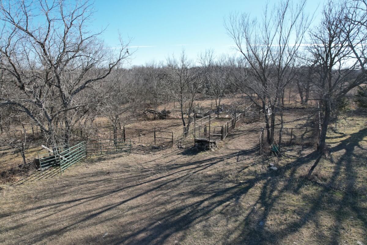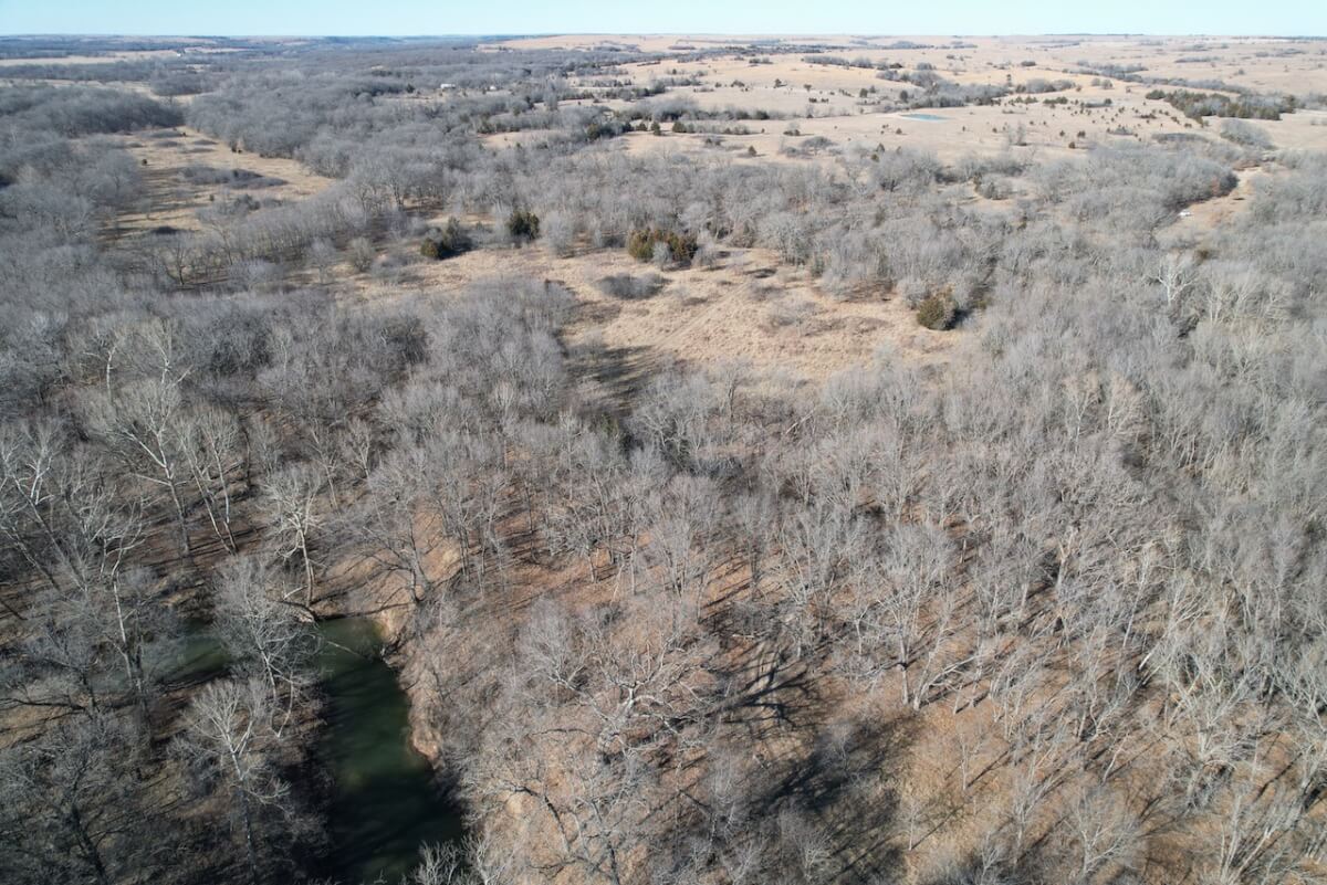 PROPERTY DESCRIPTION: 726.7 acres located in the hills of Chautauqua County, Kansas northwest of Sedan. Kansas Rd. splits this ranch into a north portion and south portion. Nearly 1 1/2 miles of Middle Caney Creek runs through the south portion of this scenic ranch, offering a rare opportunity to purchase such a lengthy stretch of the exceptional water resource all on one property. Other features of the south portion include 2 ponds, pasture, an abundance of quality hardwood trees, and spectacular elevation changes. There is almost 1 mile of abandoned Railroad Tracks on this portion of the property, popularly known as a natural traffic way for Kansas Whitetail Deer and other wildlife. A beautiful old Native Stone barn is located along the road, as well as a homestead area with a house and buildings that have some potential utility with some work and cleanup. A rural water meter will transfer to the Buyer. Native stone fences throughout portions of the interior offers a glimpse into the past, when intense labor was required to build such a relic. Large unique natural rock formations are found throughout this property, providing hours of exploring and visual enjoyment. The north portion of the ranch has 2 more ponds, three heavily wooded areas, open native bluestem pasture, a creek, and some old homestead remnants. The was some past oil production on the property with pump-jacks and tank batteries still present.