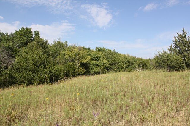 LAND & WILDLIFE: 75.3+- acres of diverse land with heavy timber, potential tillable currently planted to brome, and a creek. There is a large elevation change from a wooded hillside on the south end of the property rapidly dropping off into the the timber lined creek and tillable bottom ground currently planted to brome. The creek is a wet weather creek with thick timber for excellent wildlife cover and large timber perfect for roosting. There is a very impressive spring on the property that has continued to produce water even during the recent droughts. Each of the 6 separate tillable fields is surrounded by timber making this property a wildlife haven with Kansas whitetail deer, turkey, and quail all abundant. This property would make a great homesite or building site for a cabin/weekend getaway. The wildlife and terrain offer excellent recreation possibilities with a source of agricultural income. The property is secluded and has good access.
