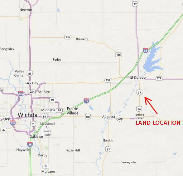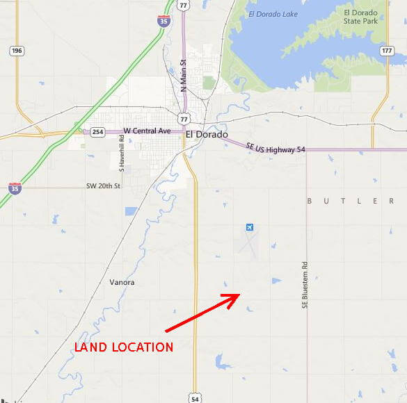 LAND LOCATION: From El Dorado, Ks south on HWY 77 to 50th, east to the property.