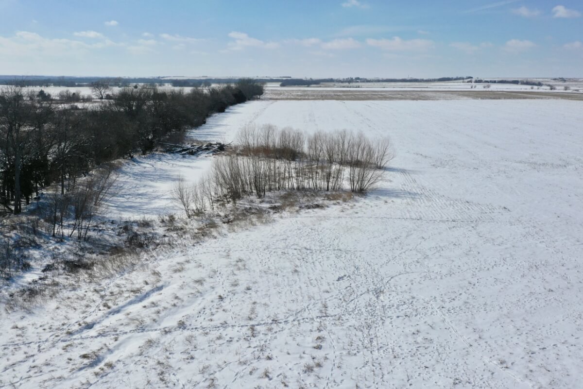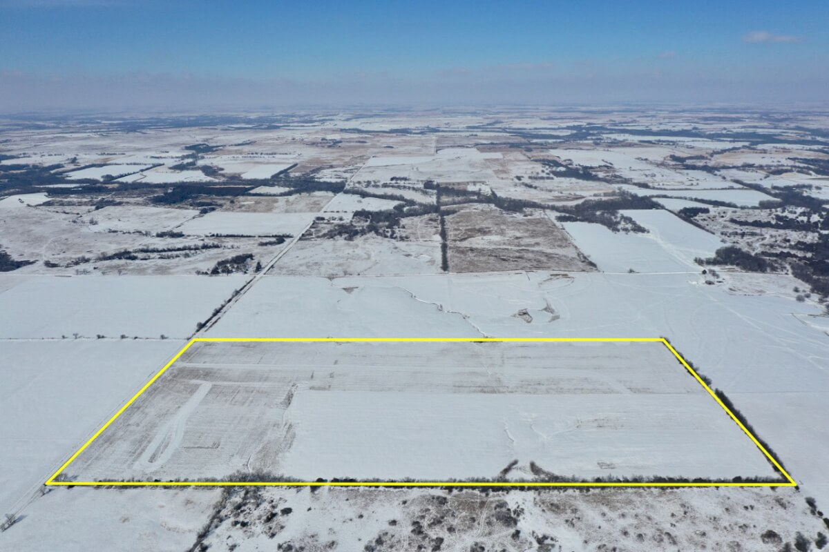 PROPERTY DESCRIPTION: 75.4+- acres of mostly all tillable land, with tree rows along the south and east boundary of the property. There is a small pond located along the south boundary of the property. This diverse property provides agriculture income and wildlife feed for a well rounded land investment opportunity. Take notice of all the deer tracks in our snow pictures! Planted to the right crop, this property would offer hunting for Kansas Whitetail Deer, Quail, Ducks, and Geese!