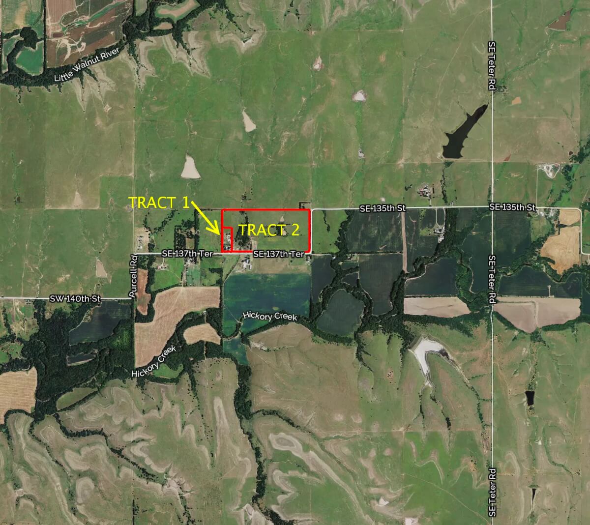 LEGAL DESCRIPTION: 75+- acres in the N/2 of the SE/4 Section 12, Township 28 South, Range 05 East of the 6th PM, Butler County, Kansas.