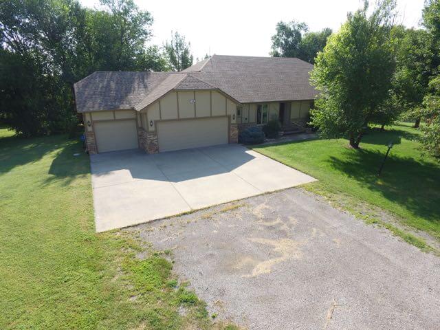 PROPERTY DESCRIPTION: Beautiful 4 bedroom 3.5 bath rural residence on 3 acres with a nice pond directly behind the house! Stay cool in the summer on the large east facing deck and patio that are perfect for entertaining. The large main floor master suite has good closet space, separate jetted tub and shower, and double sinks. Kitchen features include an eating bar, island, desk, and abundant cabinets. Appliances include a refrigerator, stove, oven, range hood, trash compactor, dishwasher, and disposal. The main floor living room has vaulted ceilings, sky lights, and a wood burning fireplace. Spend family time in the formal dining room or the breakfast eating space. The basement rec room includes a pool table, wet bar, and fireplace. Need storage? You will love the large 3 car attached garage. Home is on rural water but has two wells and a septic system. One well runs the sprinkler system and pumps to the pond. Second well is for the GEO Thermal unit and outside hydrants. Pond, timber, tons of living space, and huge deck and patio!! All this just off Santa Fe Lake Rd for quick access to Wichita, Andover, or Augusta! Call Jeremy Sundgren for a showing 316.377.0013!