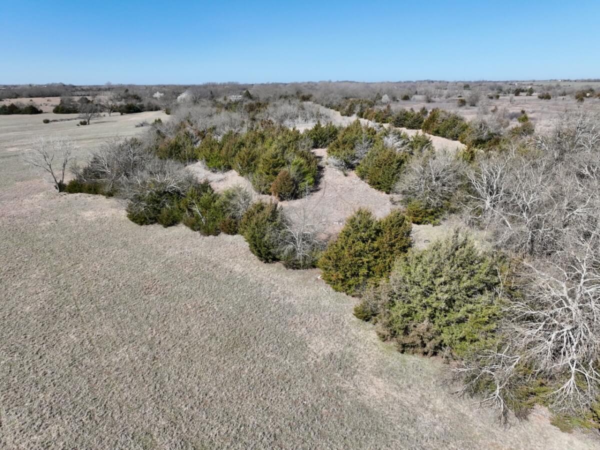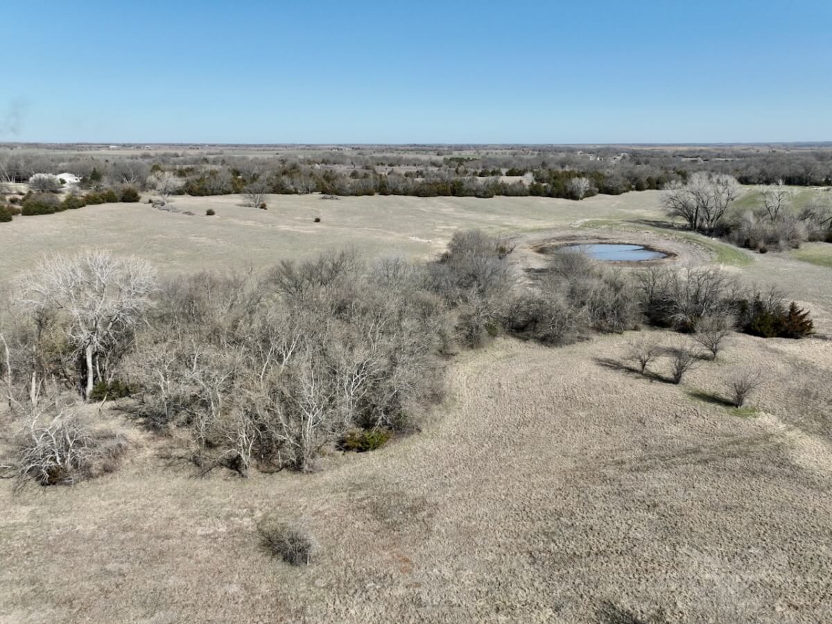 PROPERTY DESCRIPTION: 79.8 surveyed acres between Rose Hill and Douglass in Butler County, Kansas. This property is the definition of diverse with alfalfa, brome, native grass, ponds, large trees, brush, cedars, utilities and a building! The terrain is gently rolling, with a majority of the property sitting in a valley with higher elevations rising to the north and south. There is a 60′ x 40′ metal building with a 12′ lean-to that sits over 1200′ off the road! Electric service to the building is buried. Water at the building is provided by a well. Additional water on the property includes a large pond, small pond and creek/draw. Wildlife on the property is abundant! Kansas whitetail deer and turkeys are very commonly seen. The current owner utilized the property to raise local beef, so it is nicely set up with good fencing and cross fencing. Additional, there is some permanent pipe fencing around the building to help with working and gathering livestock. Access to Andover and the Wichita metro area is excellent, with a location just minutes from Santa Fe Lake Rd, 210th, and HWY 400. Take a look at this great opportunity to purchase a future home building site or weekend retreat! Invest In Land!