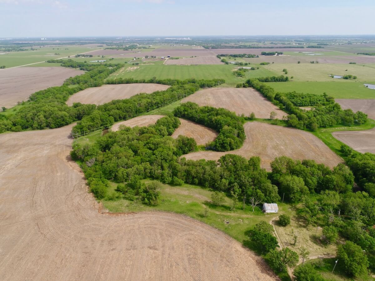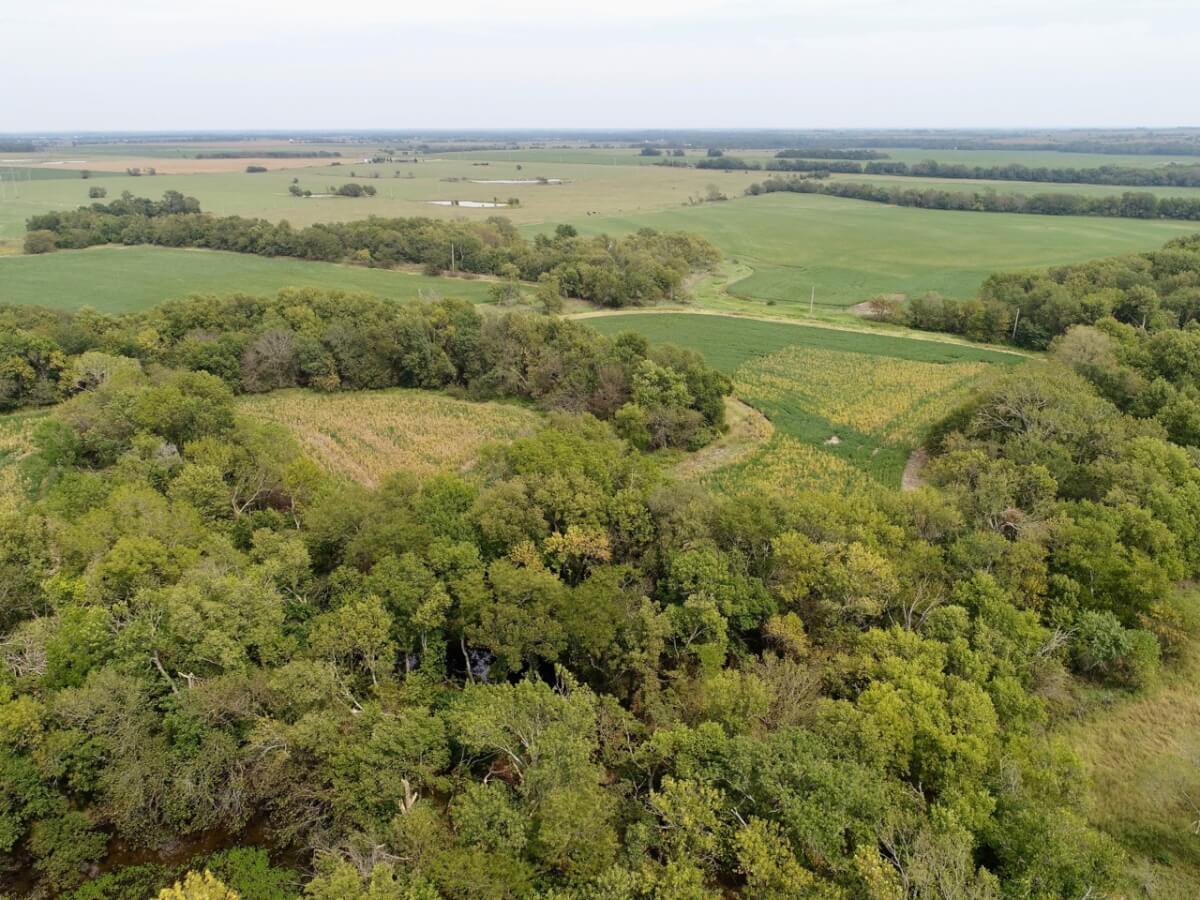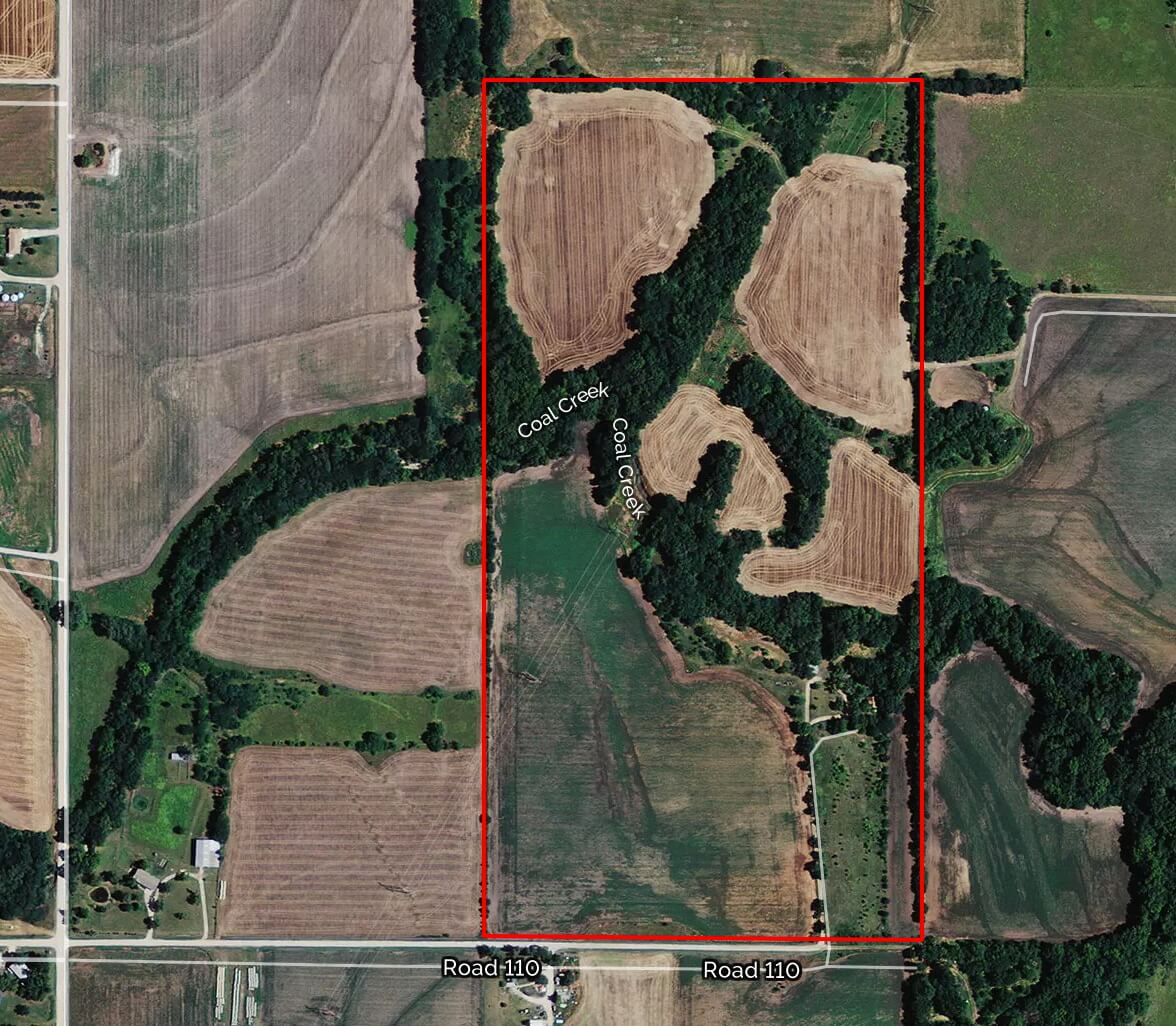 PROPERTY DESCRIPTION: 80+- acres of excellent quality Lyon County, Kansas land. There are approximately 53 acres of tillable ground that is currently planted to Soybeans. The balance is Coal Creek, timber, wildlife habitat, and an old homestead. A rural water meter is present on the property. With utilities in place, this would make an amazing home site, cabin site, or weekend retreat. Wildlife is extremely high quality and abundant, as is evidenced by the pictures below. World Class Kansas Whitetail Deer and Turkeys can be seen regularly on the property. There are 3 established mineral sites and 2 established food plots. This great property sits at the end of a dead end road. That location and the the fact that no roads exist for miles to the east provide seclusion and low traffic.