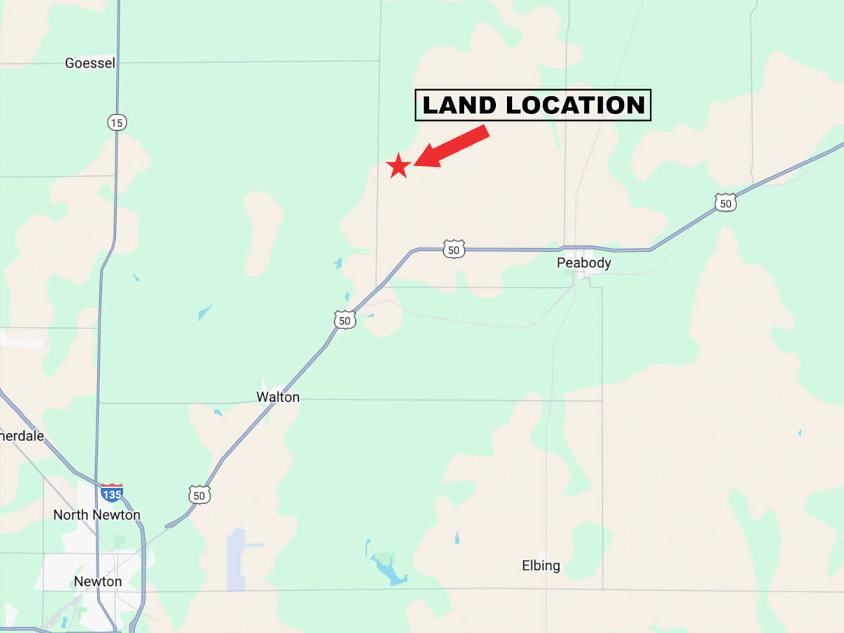 LAND LOCATION FROM PEABODY: West on HWY 50 4 miles to Jade Rd., north 2 miles to 90th, west 1/2 mile.