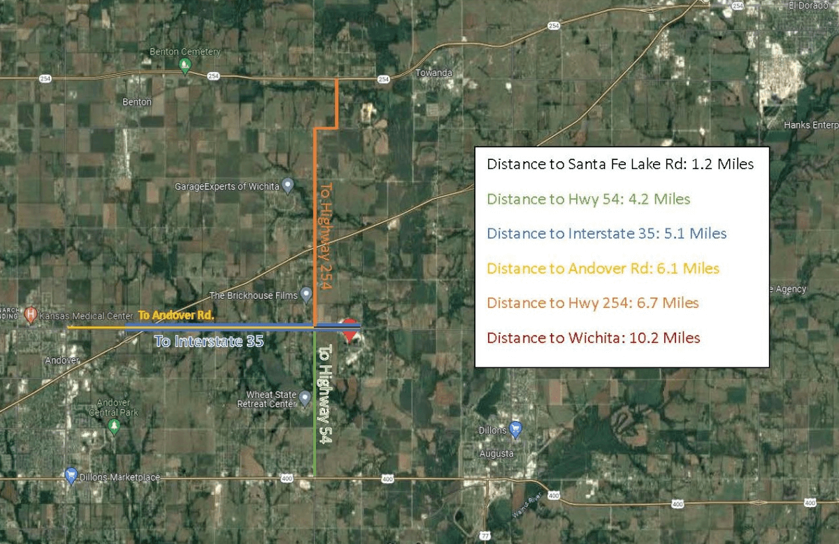 LAND LOCATION: From Andover Rd. in Andover, east on SW 70th St (21st St) 5 1/2 miles to the property.