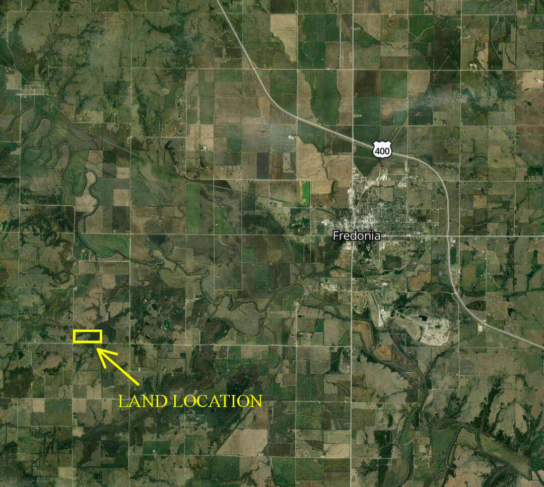 LAND LOCATION: From Fredonia 2 miles south on Harper Rd to 900 Rd, 4 1/2 miles west to the property.