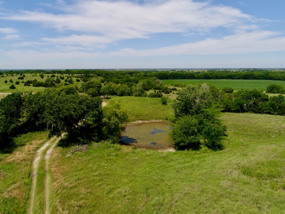 PROPERTY DESCRIPTION: 81.4 acres of very scenic rolling terrain near Douglass in Butler County Kansas. Just 1/2 mile off blacktop! Great location to build a home or cabin. Amenities include several small ponds, a small timber lined creek, spring fed water well that often free flows, abundant wildlife including Kansas Whitetail Deer, Turkey, and Quail. Three large natural mounds on the property offer amazing scenic views. There are some old buildings in the northeast corner of the property. Due to the natural elevation changes in the area, this property is impossible to see from the road, so schedule a private viewing through Sundgren Realty! Additional privacy is provided by hedge rows along three sides of the property, in addition to heavy timber throughout. There are some large and amazing Walnut trees in the northeast corner of the property around the old improvements.